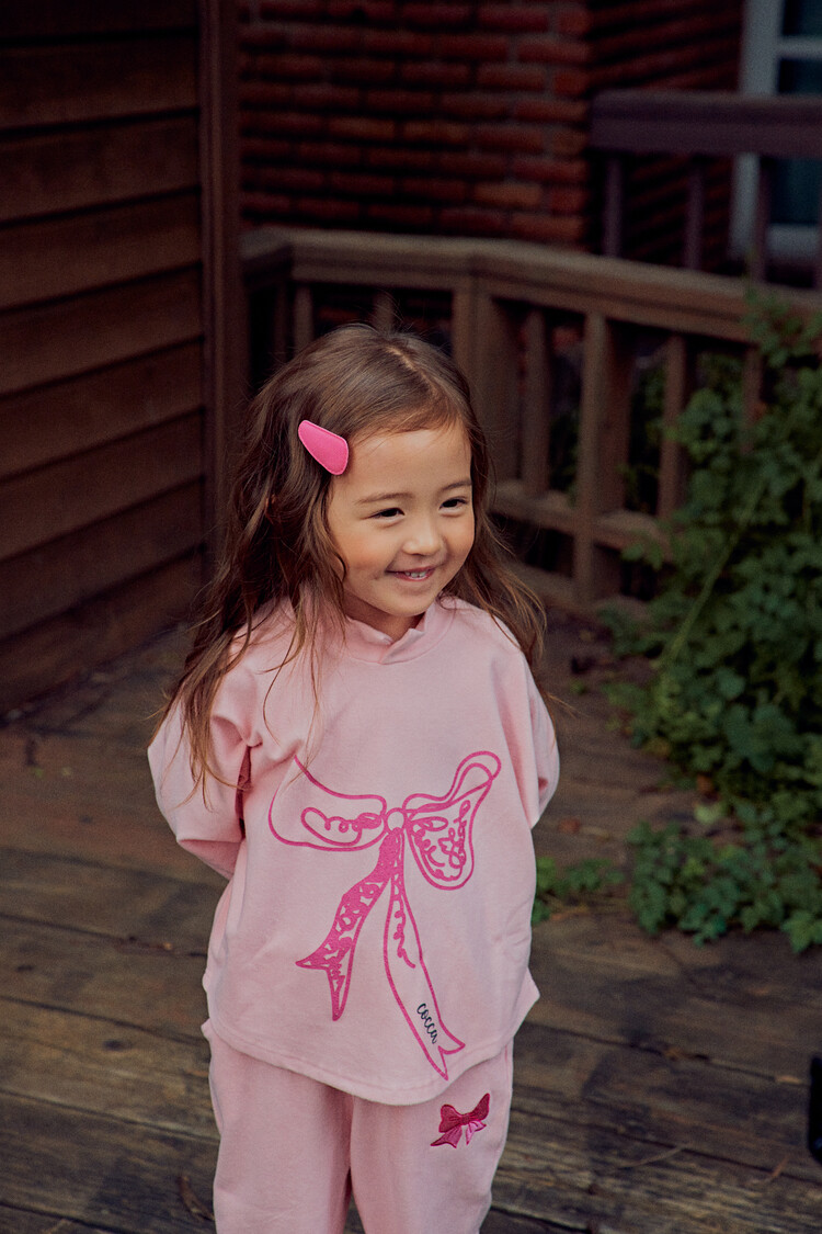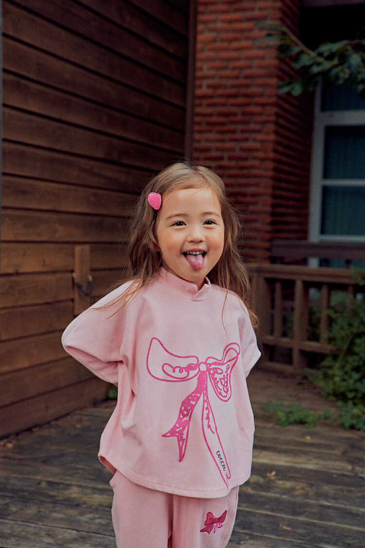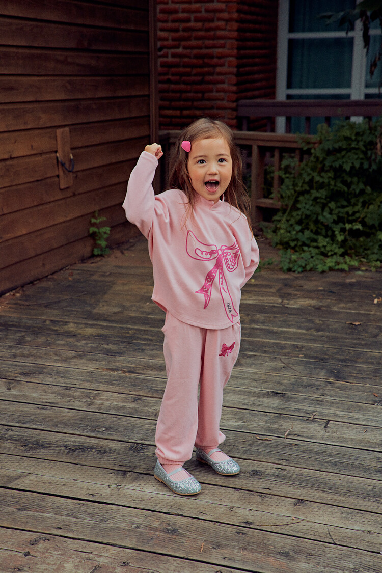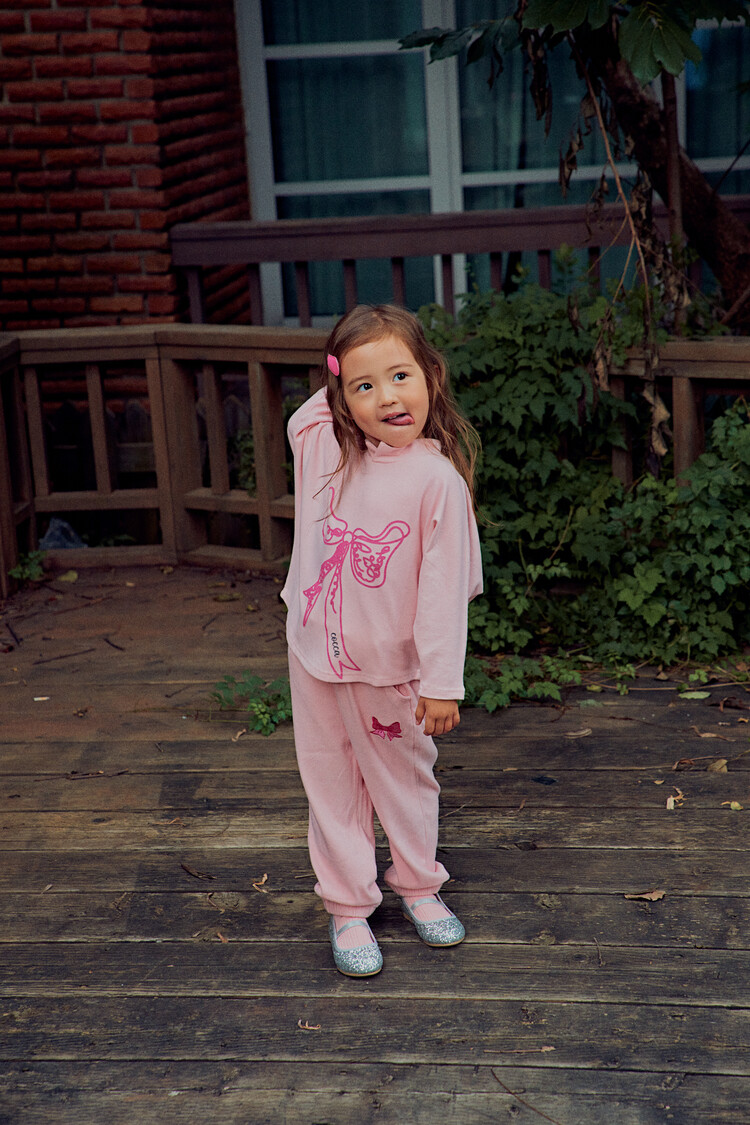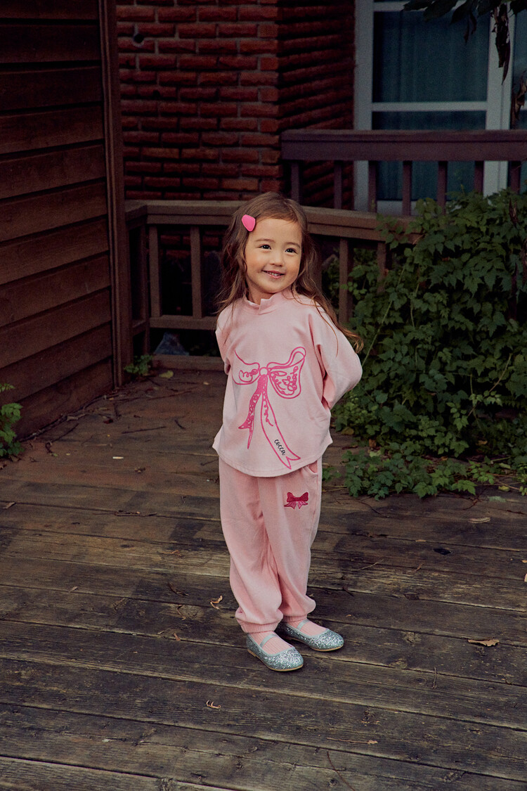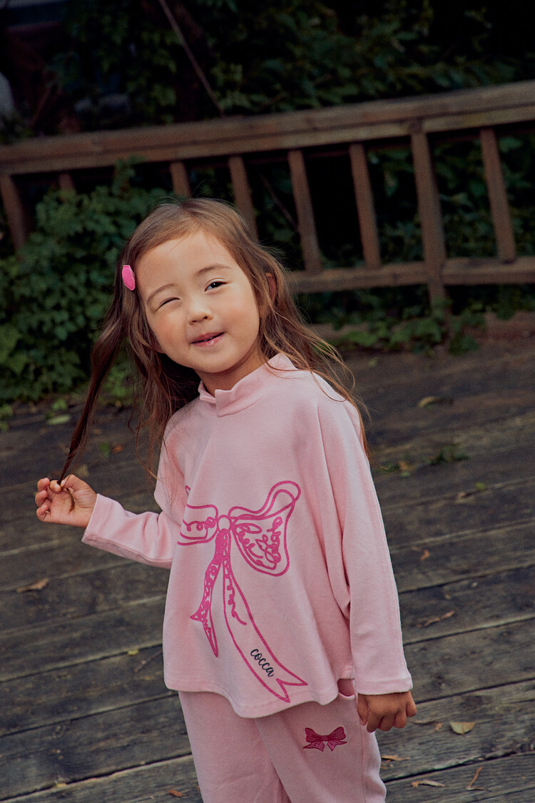 퀄리티에 놀란다는 코카의 상품들은 고가의 원단으로 제작됩니다. 매우 부드러운 터치감을 자랑하는 퍼지 상하세트는, 포근하고 부드러운 원단으로, 입었을 때 아이들이 느끼는 편안함은 물론! 활동하기 너무 편한 핏으로 제작되었어요. 상의는 가오리 모양의 루즈한 쉐입으로, 하의는 딱 알맞게 떨어지는 죠거팬츠로, 실내에서도, 야외에서도 데일리로 입기 좋은 아이템 입니다. 앞면의 사랑스러운 큰 리본 프린트가 포인트이며, 네크 라인의 카라로 포인트를 주었답니다. 하의는 주머니옆 리본 자수가 포인트입니다. 단독으로 입어도 예쁘고, 세트로 입어도 매우 예쁜! 편하고 이지한 데일리 상하세트! 우리 아이들에게 꼭 필요한 상품이랍니다^^