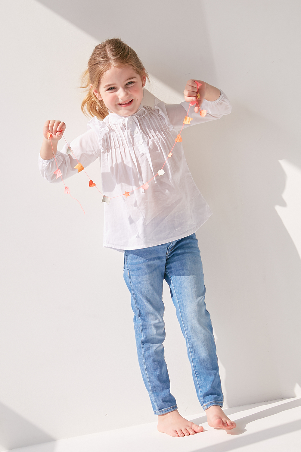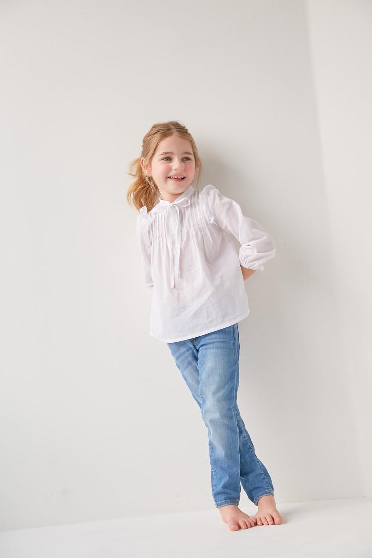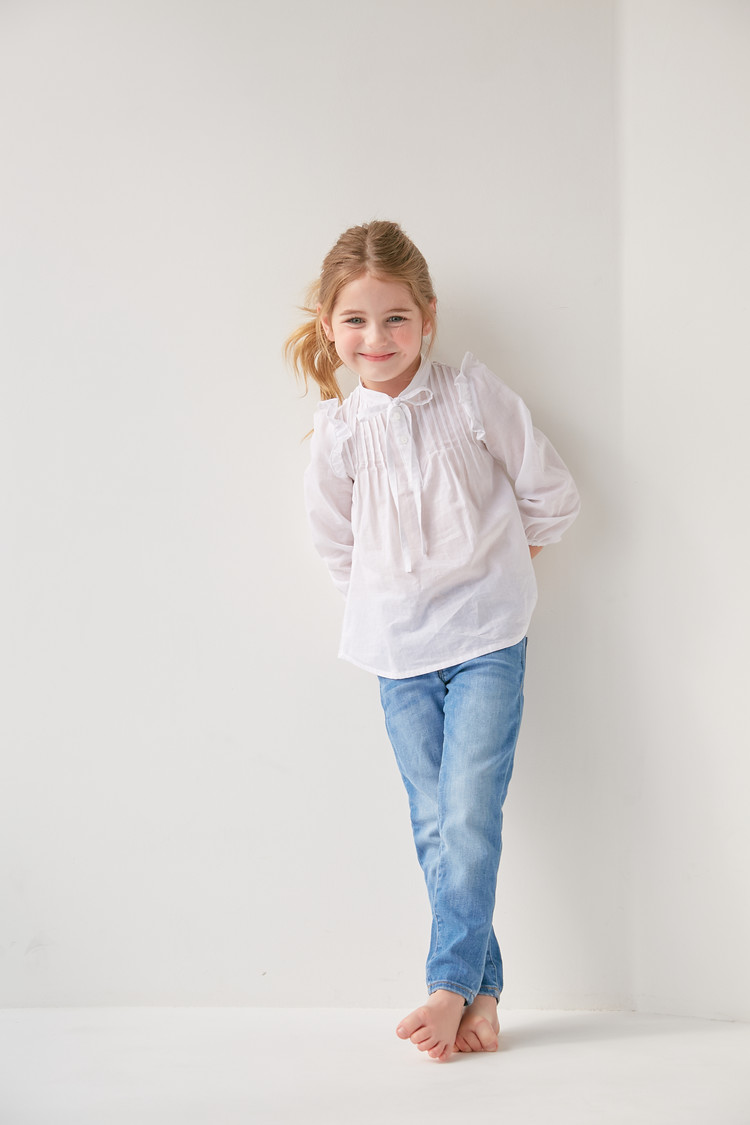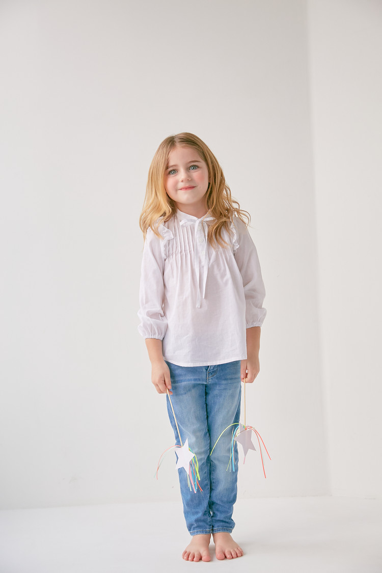 하얀 백색 면 원단을 사용하여 제작한, 정교한 핀턱 디테일이 돋보이는 COCCA의 시그니처 블라우스입니다. 앞쪽 네크라인의 끈을 리본으로 묶어 사랑스러운 분위기를 연출할 수 있으며, 어깨 라인의 러플 디테일은 더욱 여성스럽고 단정한 느낌을 줍니다. 탑에 시선이 집중되도록 깨끗한 화이트, 블루데님과 매치하거나 COCCA의 Beau Blue Flower Skirt과 매치하여 따뜻한 봄 날씨에 어울리는 룩을 연출해보세요.
