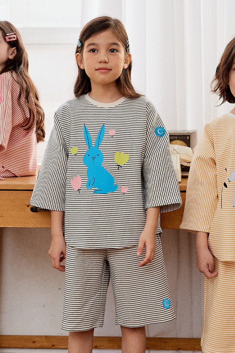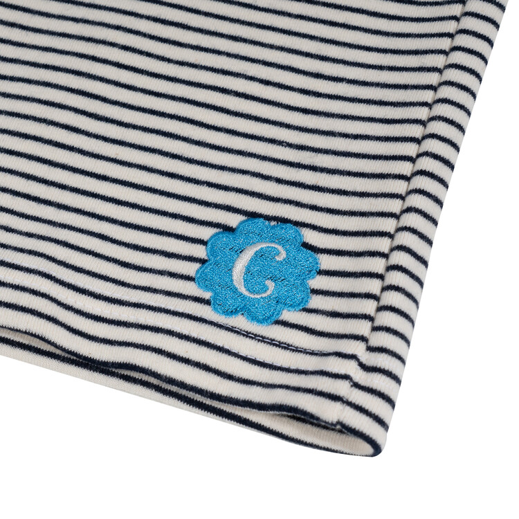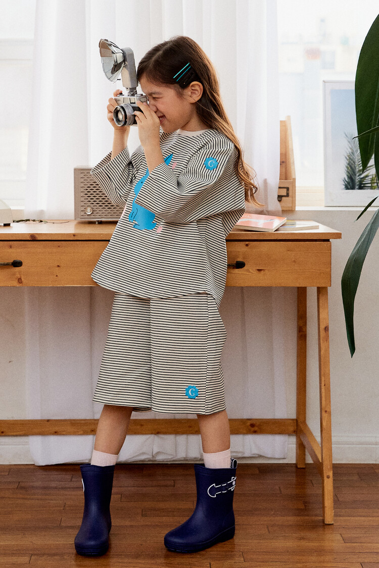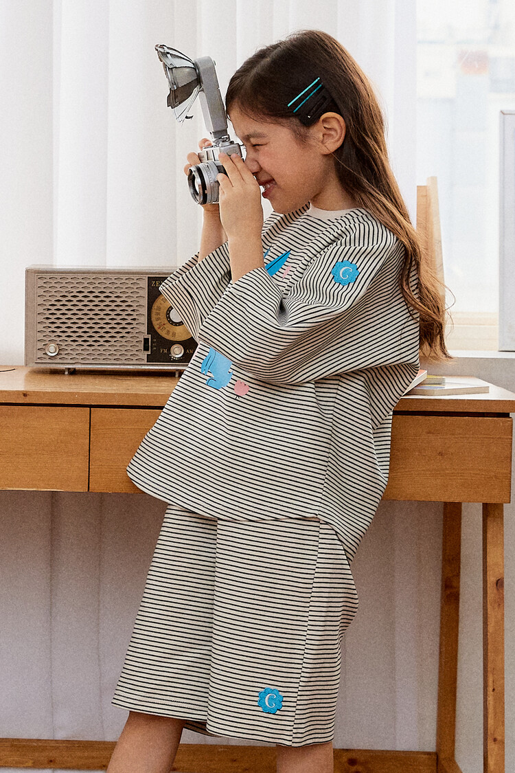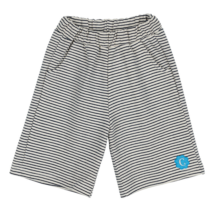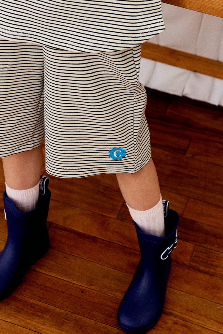 코카의 스트라이프 반바지를 만나보세요. 100%면 스트라이프 원단으로 제작된 이 상품은 고무줄 허리밴드와 주머니로 더욱 편안한 핏을 자랑합니다. 무릎까지 오는 긴듯한 기장으로 코카 로고 마크 자수로 포인트를 주었어요. 가오리 탑과 매치하여 세트 상품으로 연출하셔도 예쁘고 단독으로 편안하게 매일 입히시기 좋은 상품이에요^^
