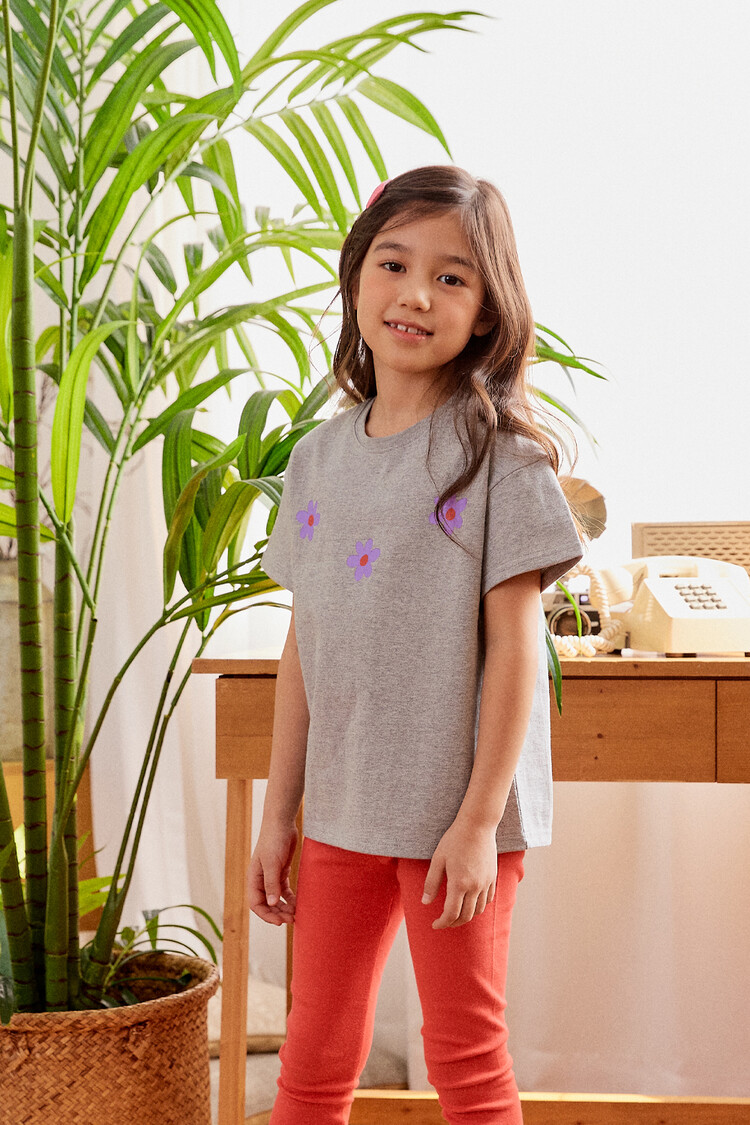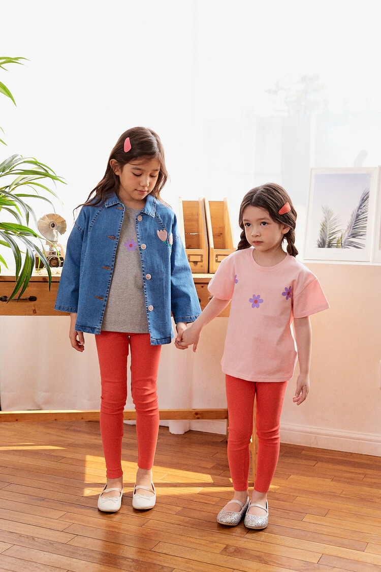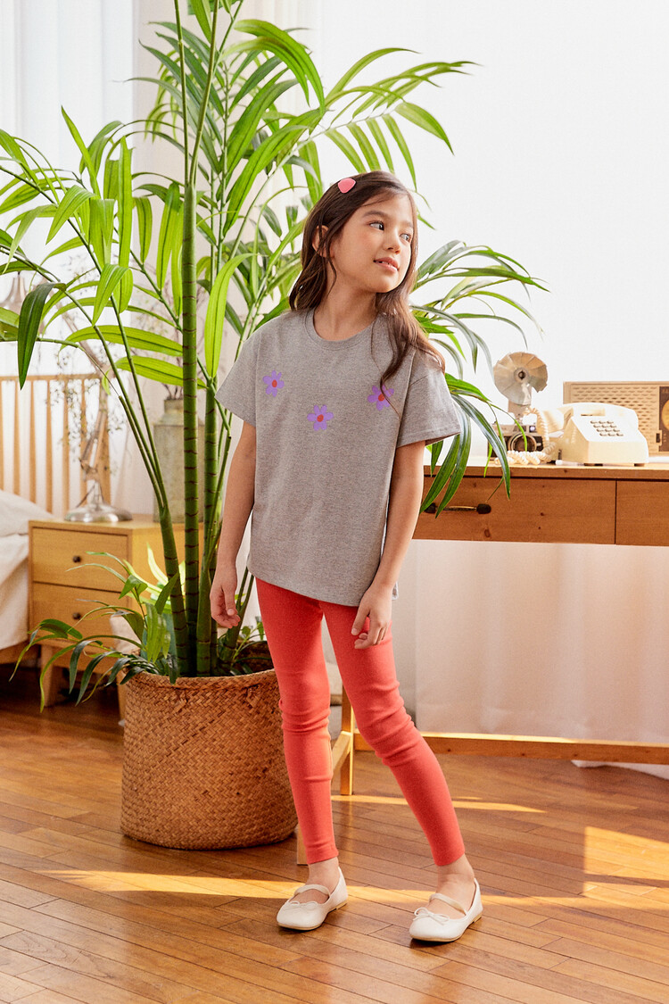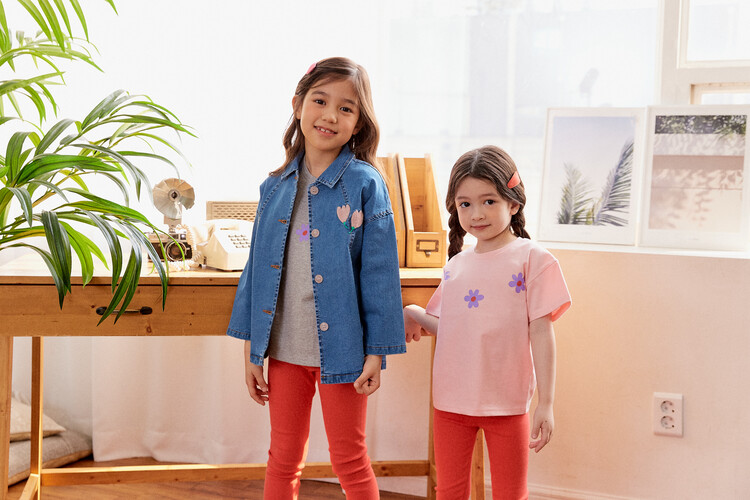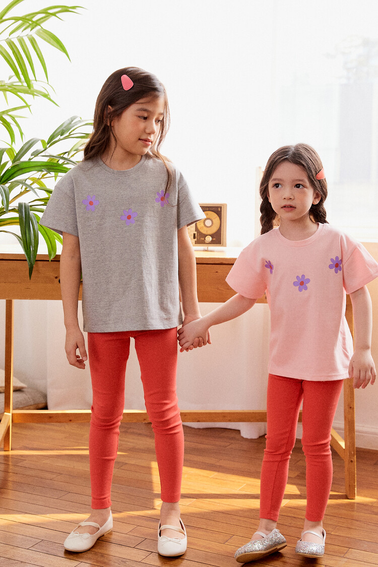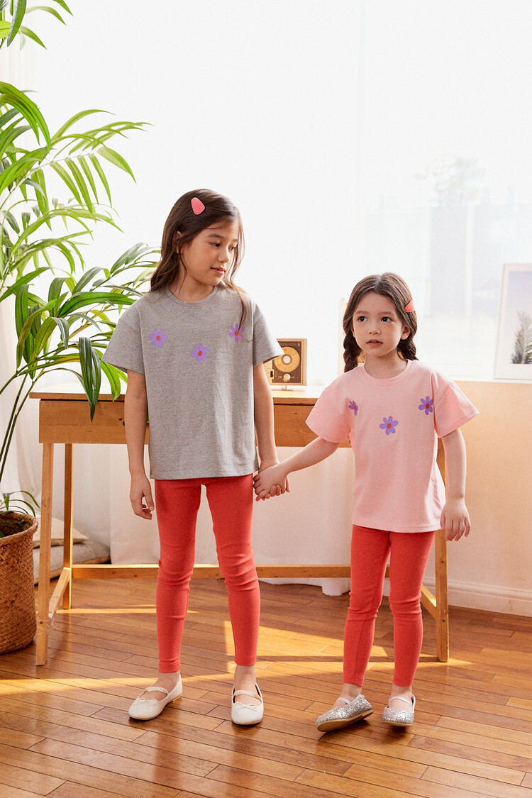 플라워 네크래스 티! 쨍한 보라와 오렌지빛 레드 칼라의 플라워 프린트가 매력적인 디자인이랍니다. 그레이와 핑크 두가지 색상으로 국내 30수 면 원단으로 제작되었어요! 코카 티셔츠 원단은 정말 좋은 원단으로 제작되어요. 후가공 워싱 까지 완벽하게 마무리 된 소재로 뒤틀리거나 늘어남이 없으며 예쁜 핏으로 기본에 충실한 티셔츠랍니다. 글리터 허리밴드가 돋보이는 코카 레깅스와 함께 매치하여 우리 아이들에게 화사한 봄 룩을 선물해주세요^^