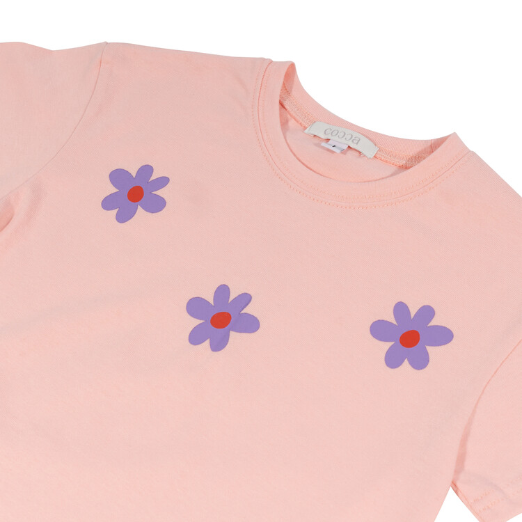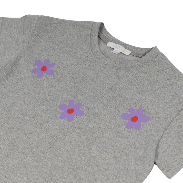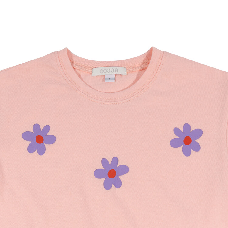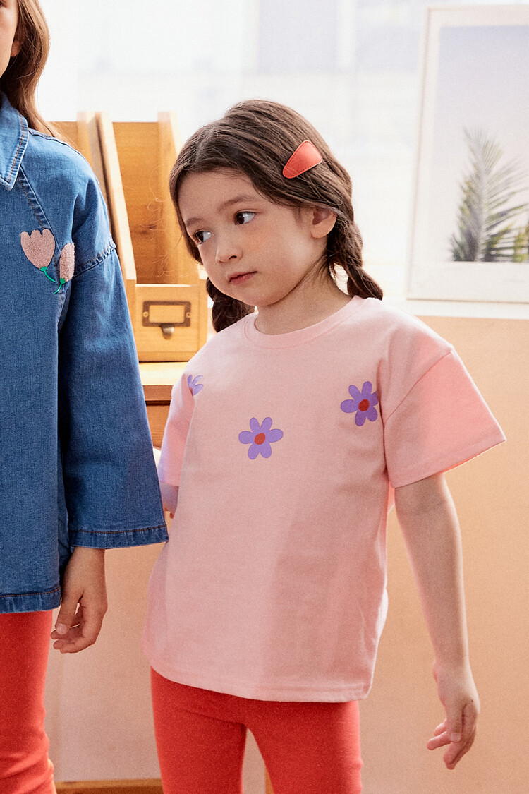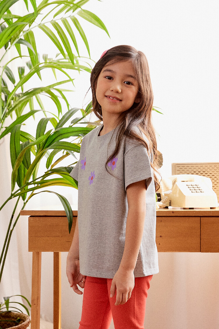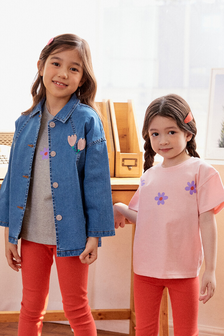 플라워 네크래스 티! 쨍한 보라와 오렌지빛 레드 칼라의 플라워 프린트가 매력적인 디자인이랍니다. 그레이와 핑크 두가지 색상으로 국내 30수 면 원단으로 제작되었어요! 코카 티셔츠 원단은 정말 좋은 원단으로 제작되어요. 후가공 워싱 까지 완벽하게 마무리 된 소재로 뒤틀리거나 늘어남이 없으며 예쁜 핏으로 기본에 충실한 티셔츠랍니다. 글리터 허리밴드가 돋보이는 코카 레깅스와 함께 매치하여 우리 아이들에게 화사한 봄 룩을 선물해주세요^^