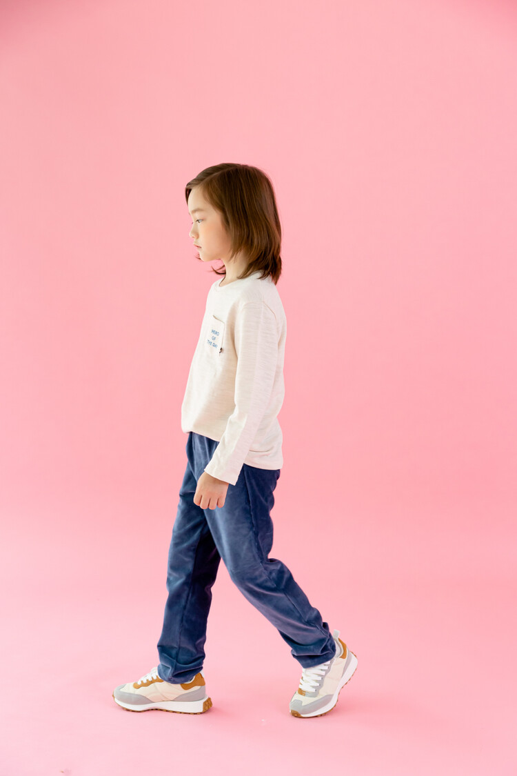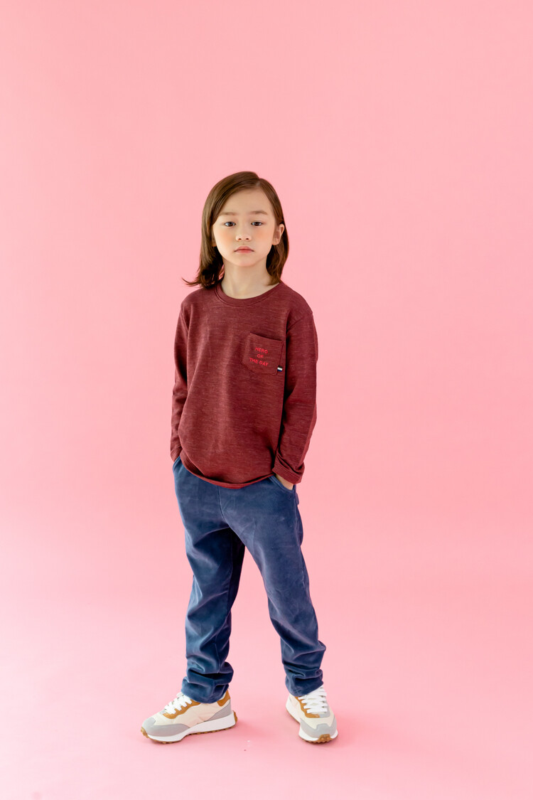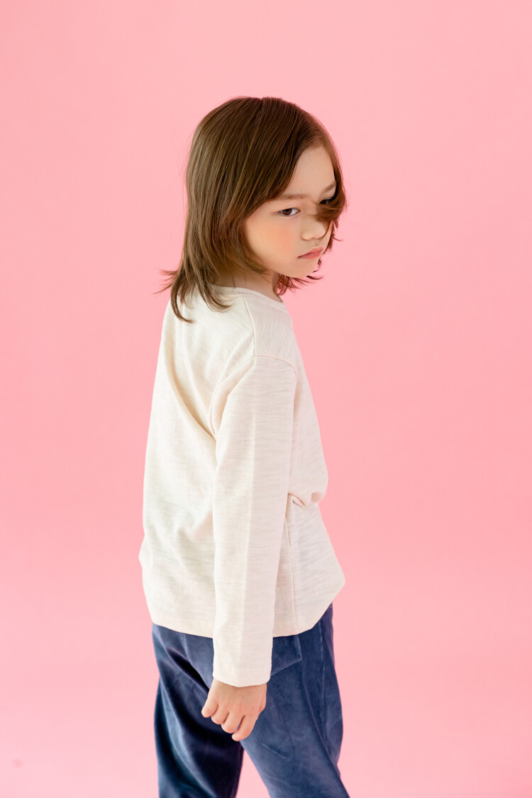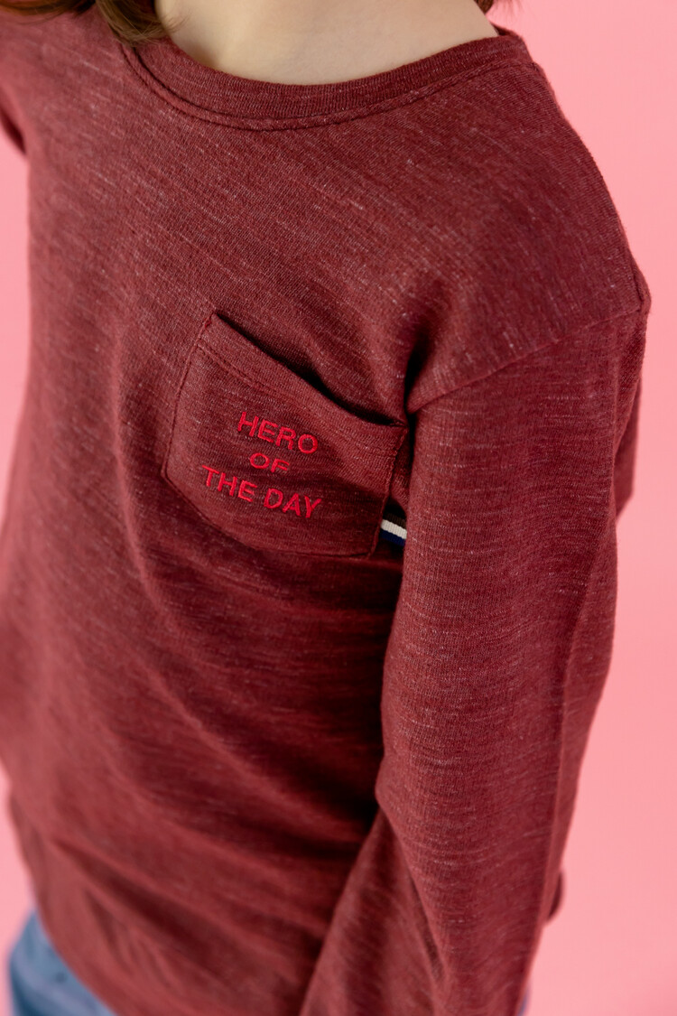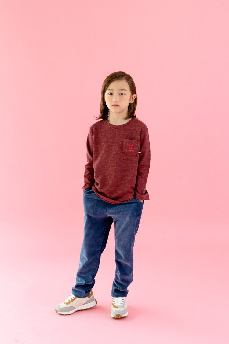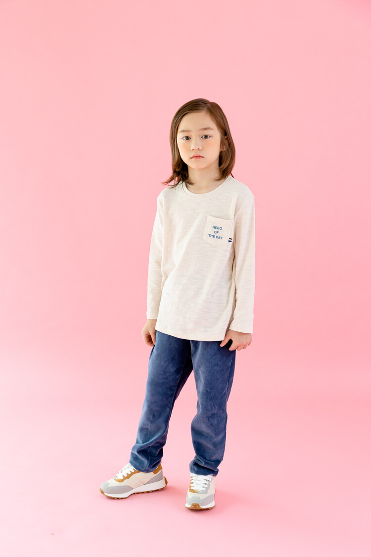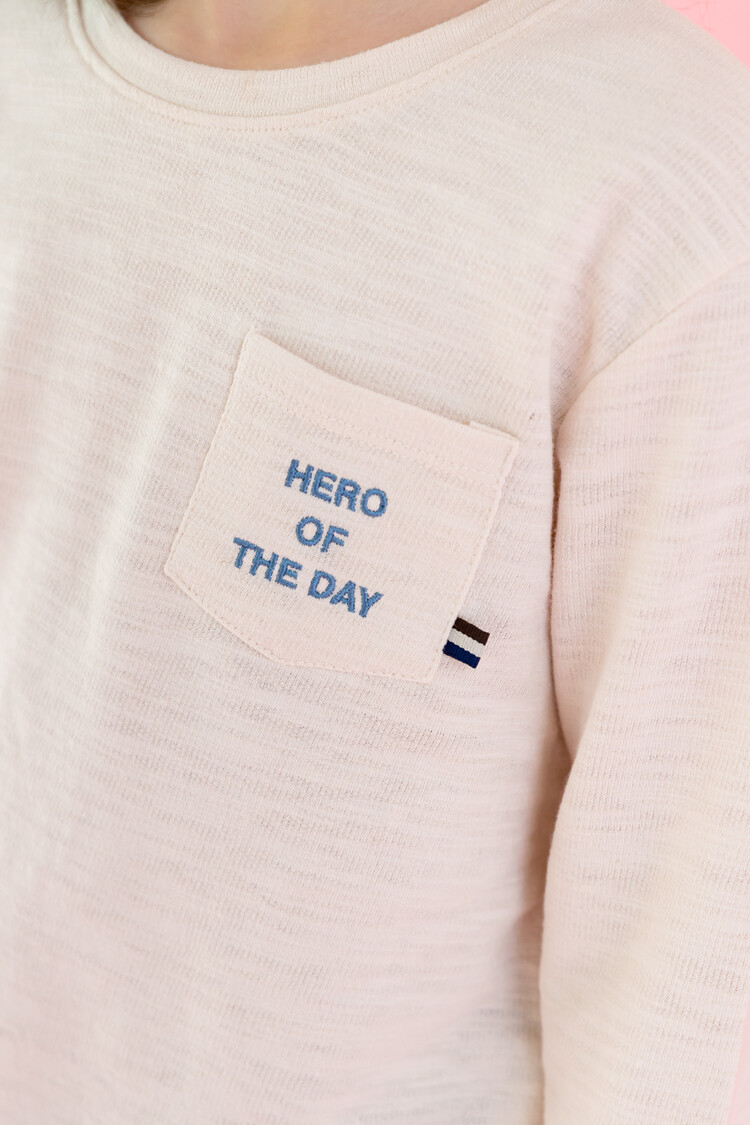 귀여운 자수 "Hero of The Day" (오늘의 영웅!)가 돋보이는 루즈핏 긴팔 티셔츠를 만나보세요. 부드러운 면으로 제작된 남아용 긴팔 티셔츠는 3가지 칼라로 선보입니다.