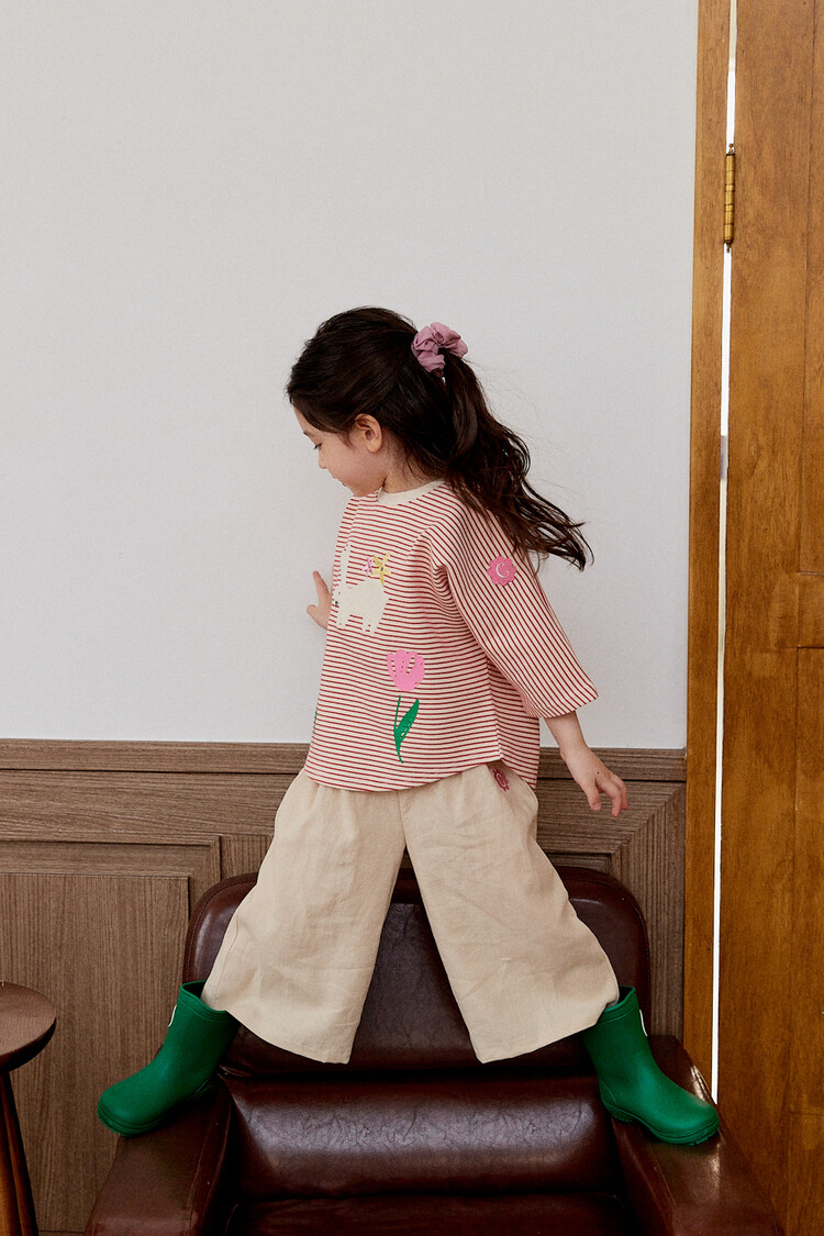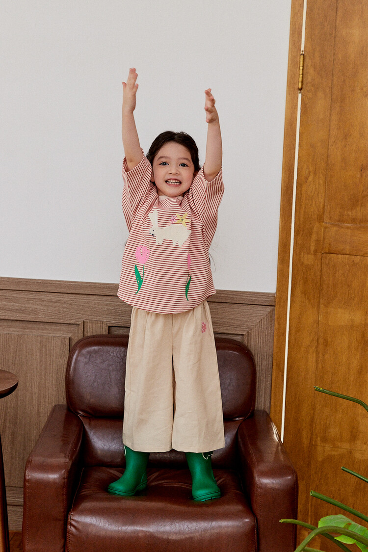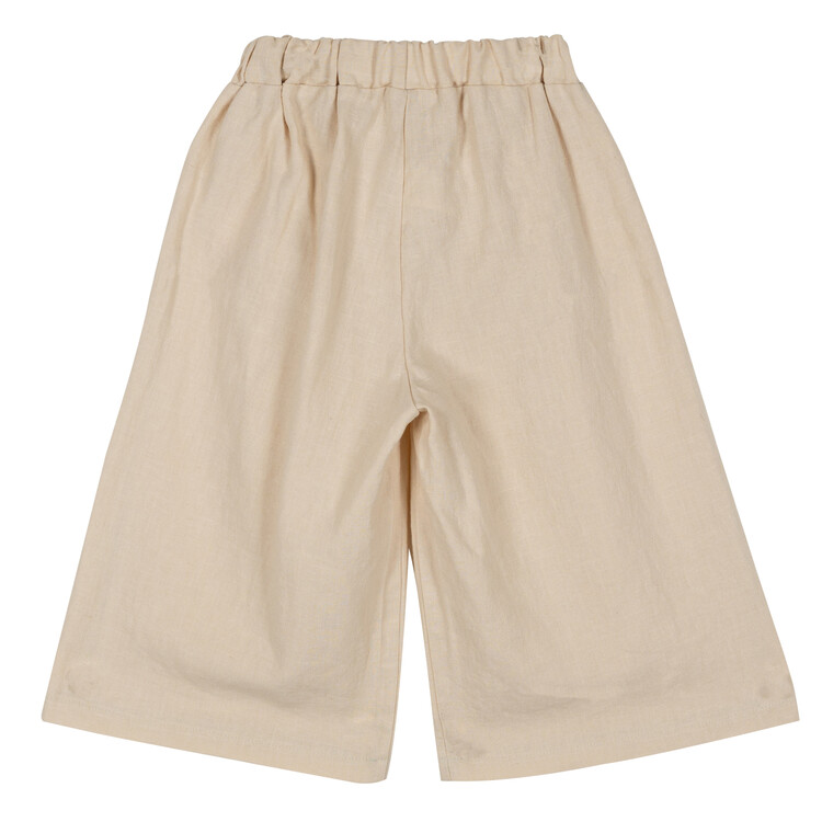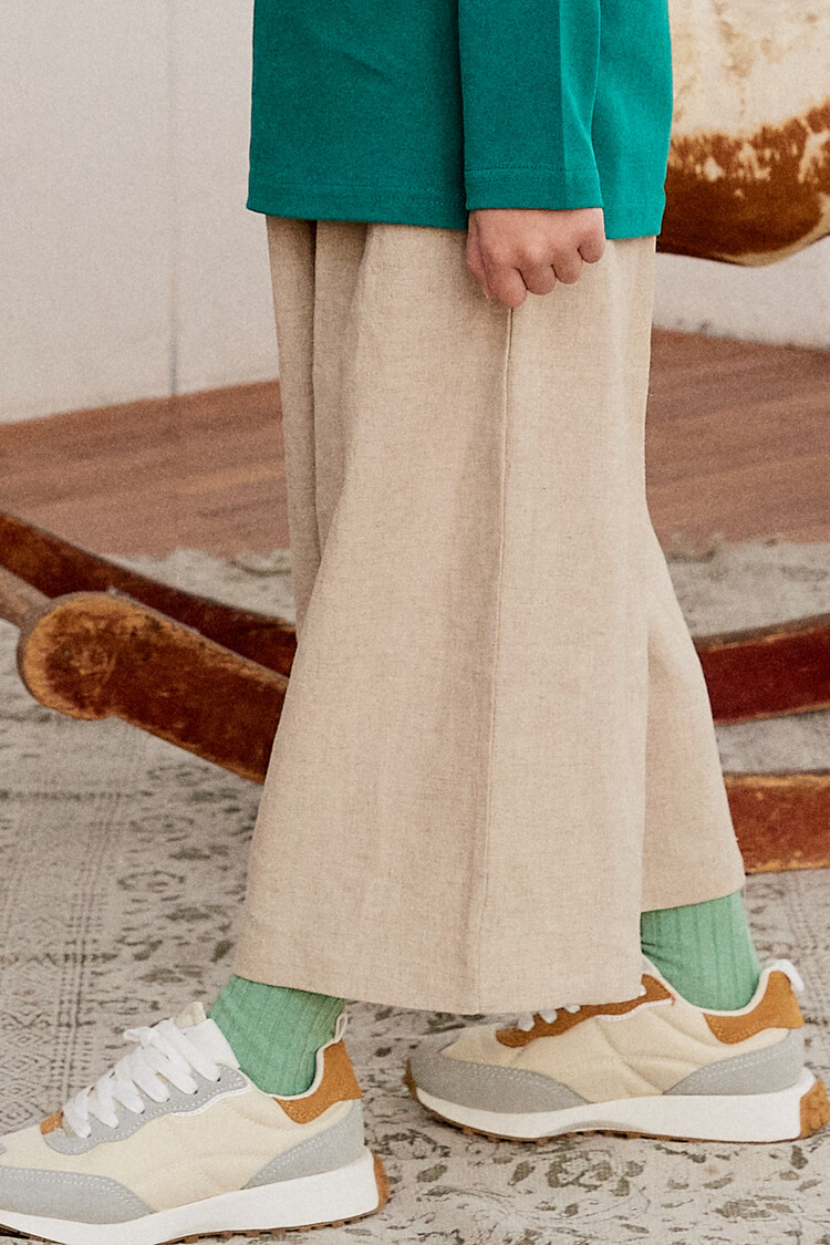 코카의 마 소재로 제작된 크롭 와이드 팬츠를 만나보세요. 매우 부드러운 리넨 소재로 낙낙한 핏의 편안한 핏의 패턴으로 제작되었어요. 찰랑거리는 시원한 이 소재는 일반 마 바지와 다르게 매우 가볍고 구겨짐이 덜한 고급 소재로 제작되었습니다. 허리밴드는 고무줄을 넣어 신축성이 매우 좋으며 봄 여름날 아이들이 너무 편안하게 입을 수 있는 팬츠예요^^