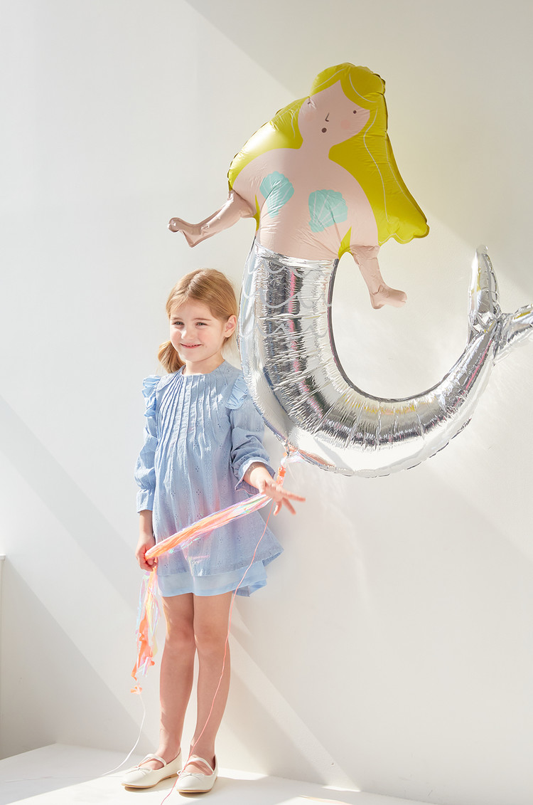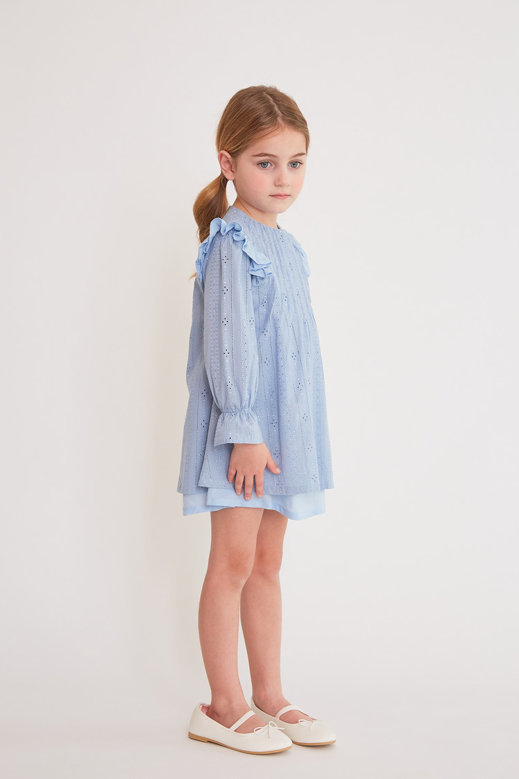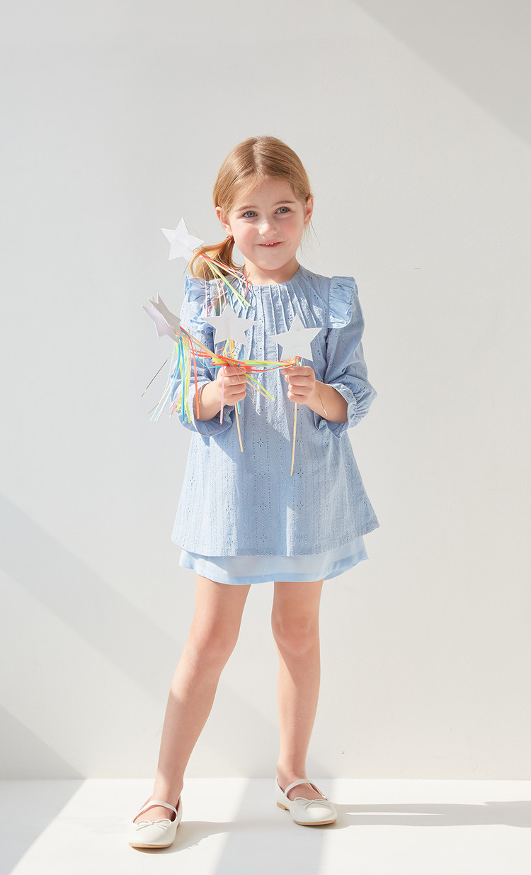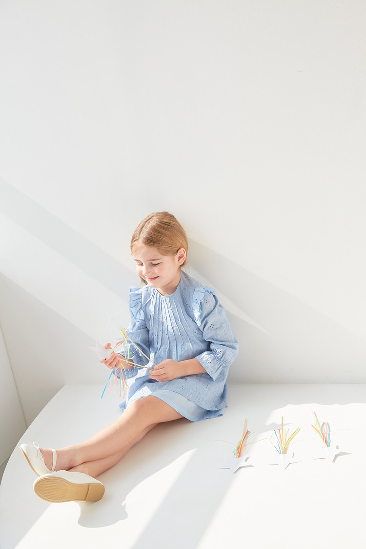 부드러운 블루 색상과 정교한 핀턱 디테일이 돋보이는 COCCA의 Teapot Blue Pin-tuck Dress를 만나보세요. 반짝이는 자수 실이 돋보이는 부드러운 코튼 소재로 제작하였으며, 깔끔한 핀턱 디테일과 어깨 러플이 프릴 소매와 조화를 이루는 디자인입니다. 발레 플랫과 매치하여 브랜드가 추구하는 내추럴한 무드를 표현해보세요.