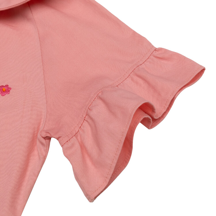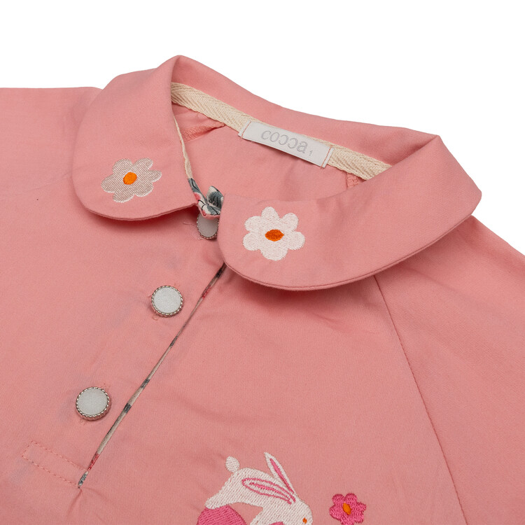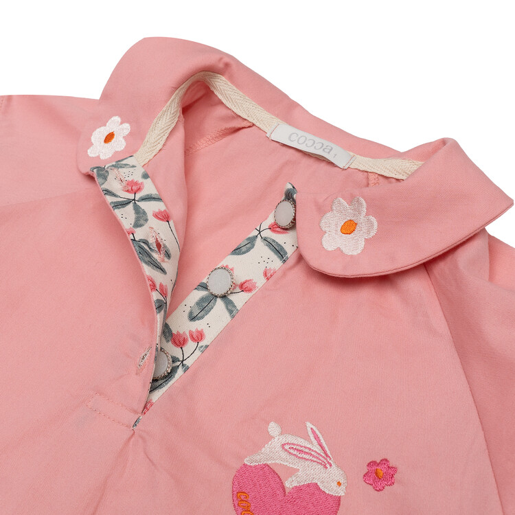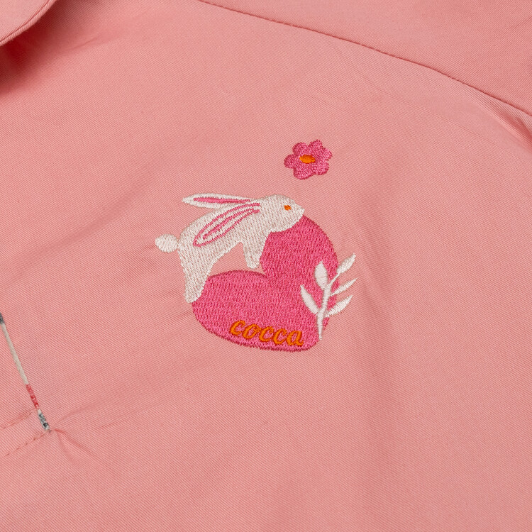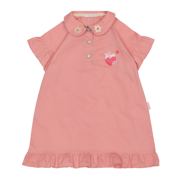 얇은 두께감의 시원한 면 100% 소재로 제작된 코카 아이템은 소매와 밑단의 프릴로 사랑스러움을 더한 원피스입니다. 왼쪽 가슴의 하트 토끼 자수와 카라의 꽃 자수로 포인트를 주었으며, 고급스러운 화이트 버튼으로 마무리하였어요. 무더운 여름 날에 어울리는 사랑스럽고 시원한 코카 원피스! 우리아이들에게 선물해주세요^^