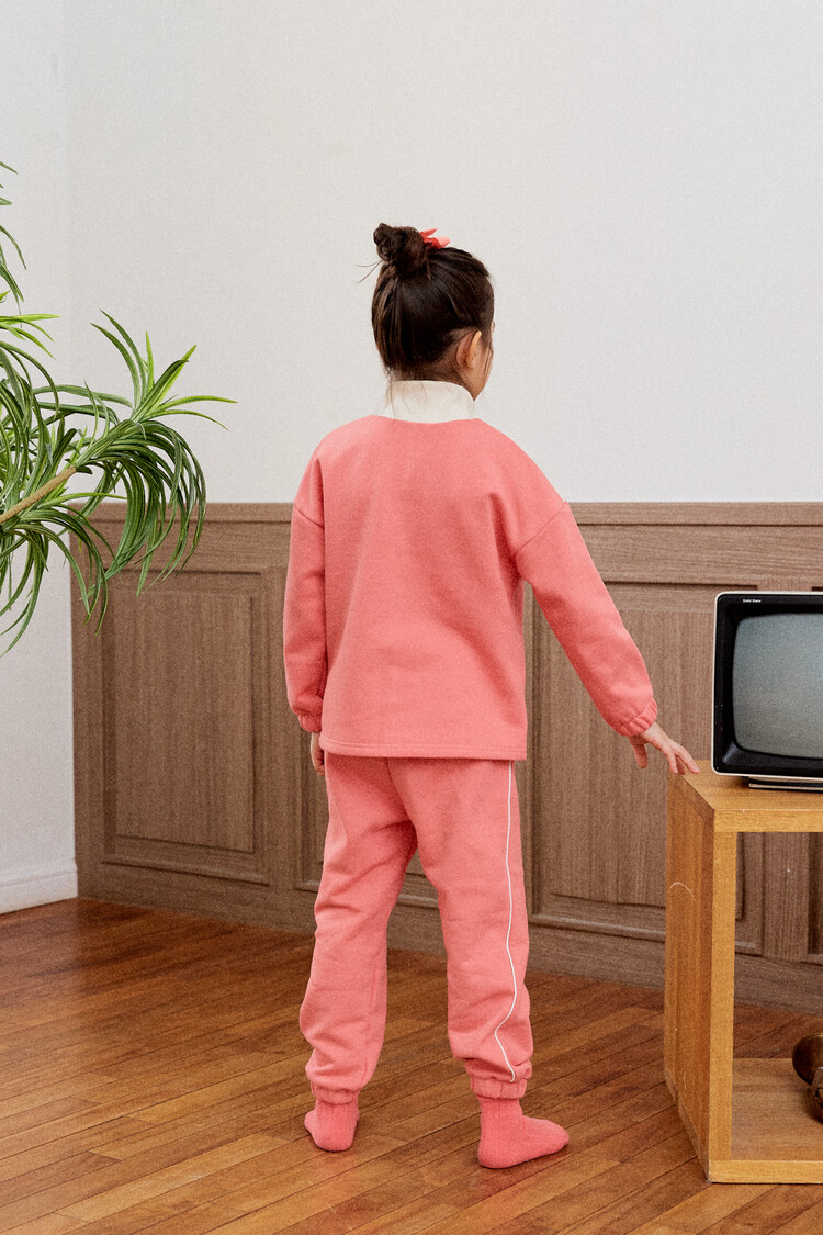 앞판에 화이트 스트링 트리밍 디테일을 더하였고, 화사한 핑크 지퍼로 마무리 하였습니다. 소매는 고무줄로 마감을 하여 더욱 편안하면서 기본적인 핏으로 연출하였어요. 화이트 티셔츠를 레이어하여 지퍼를 열어서 연출할 수도 있고, 꽃 자수가 놓아진 세트 바지와 함께 연출하면 편안한 트레이닝 세트로 연출할 수 있어요. 이번 시즌 셋업 칼라는 정말 어디에서 볼 수 없는 칼라로 직접 칼라를 선정하여 가공된 원단이랍니다. 텐타덤블 워싱된 원단으로 퀄리티 높은 원단으로 제작되어 받아보시면 후회없으실 상품이에요^^