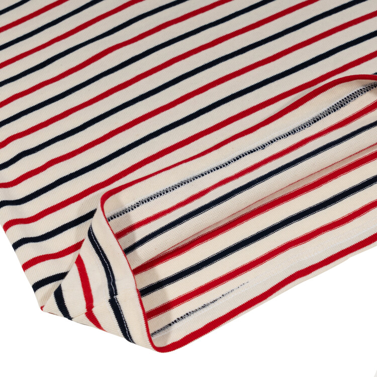 *3차 리오더로 원단이 변경되었습니다. 기존 상품은 적당한 중간 두께의 원단으로 제작 되었지만, 7월에 발송되는 제품은 무더운 여름 날씨에 알맞는 얇은 원단으로 제작 되었으며, 아이보리 부분이 조금 더 화이트에 가까운 스트라이프 원단으로 제작되었습니다.