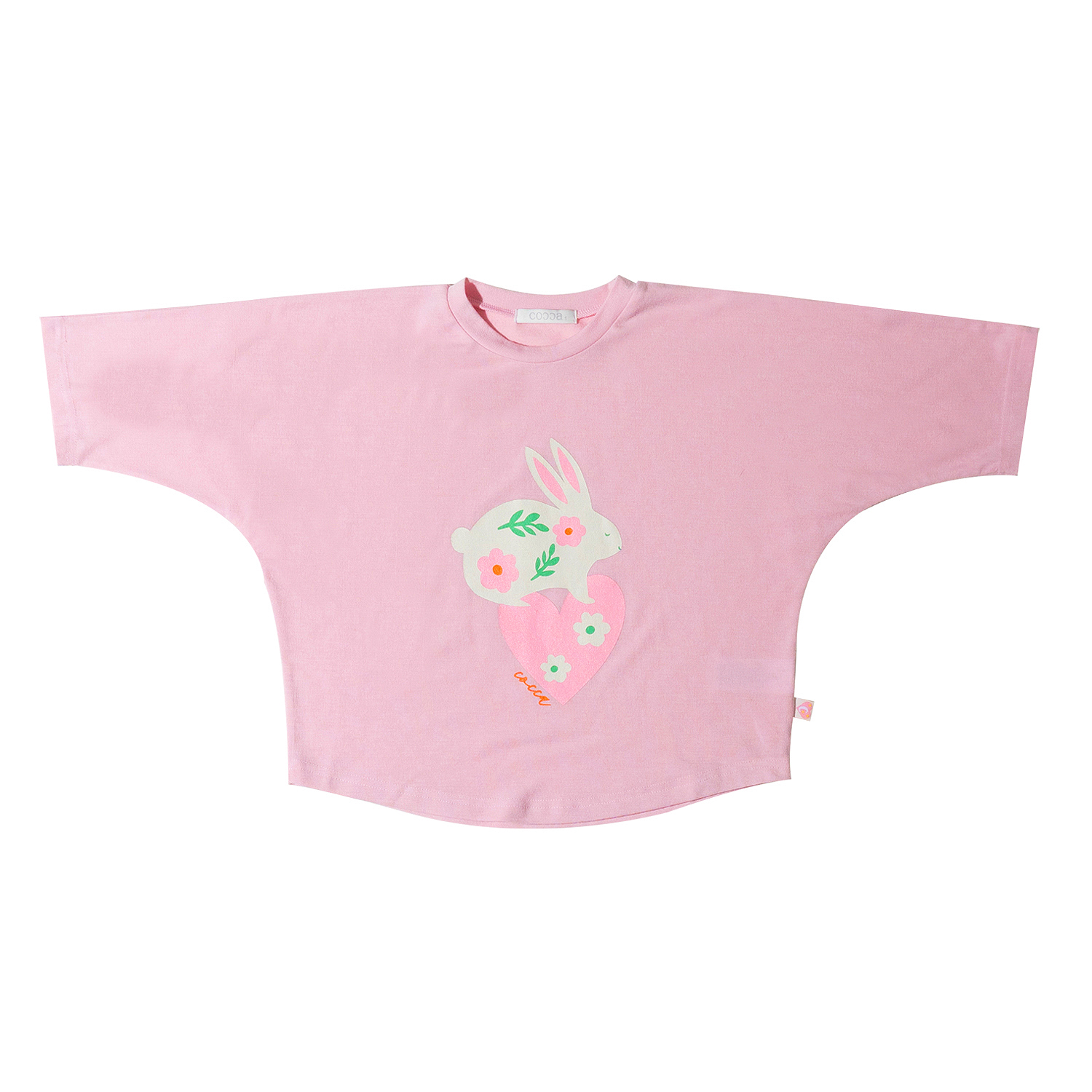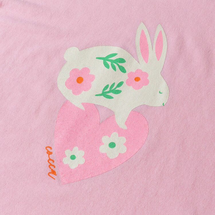 코카의 인기 실루엣으로 올 시즌에는 더욱 퀄리티 높은 원단으로 시즌에 맞게 원단을 변경하여 새롭게 제작되었습니다! 매우 부드러운 가벼운 싱글 면 스판 원단으로, 입었을 때 아이들이 느끼는 편안함은 물론! 활동하기 매우 편한 핏으로 제작된 탑은 데일리로 간편하게 입히실 수 있는 상품이에요. 어깨 절개라인이 따로 없이 몸판과 소매가 이어지는 모양으로, 더욱 편안하도록 디자인하였습니다. 몸판의 귀여운 하트 토끼 나염이 공주님들의 마음을 사로잡을거에요^^