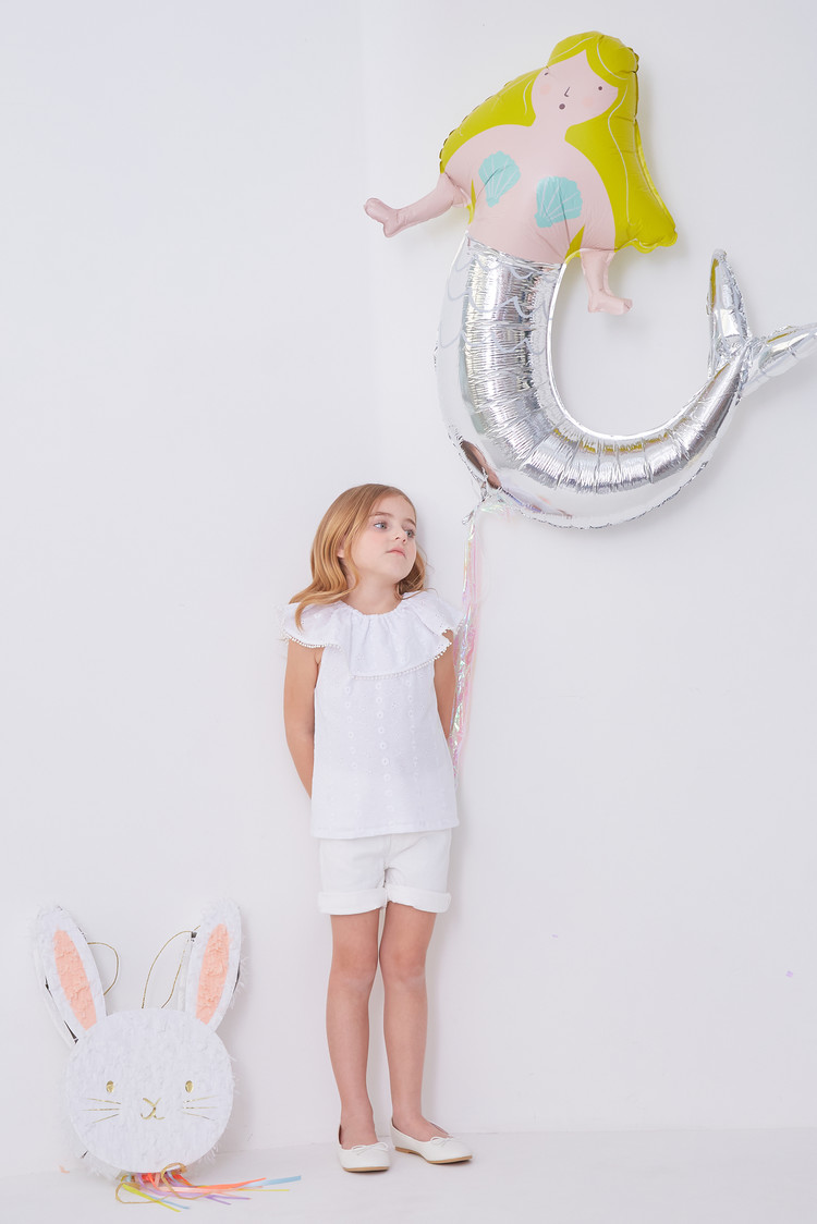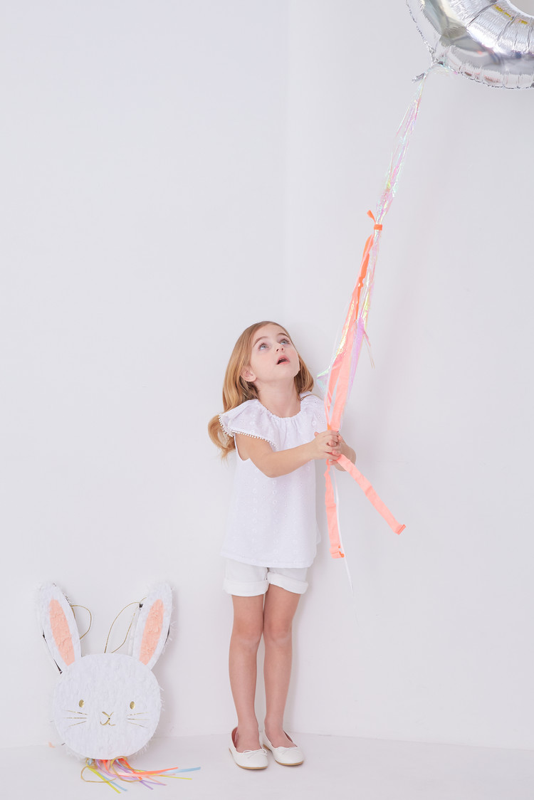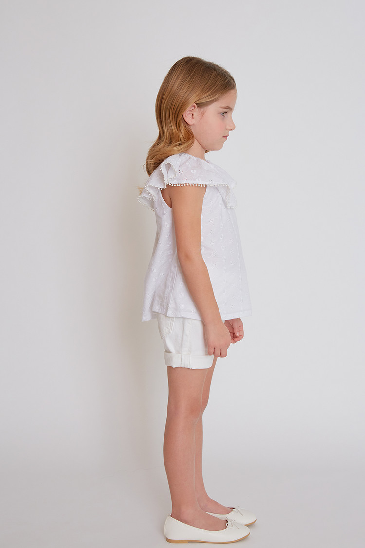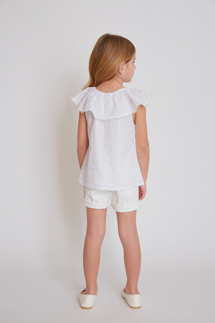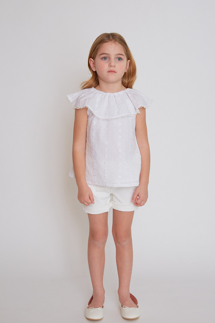 깨끗한 화이트 색상의 플로럴 자수가 돋보이는 탑입니다. 부드러운 60수 아사 원단의 안감으로 제작 되어 비침 걱정이 없으며, 넥 라인의 고무줄 마감으로 편안하고 쉽게 착용할 수 있습니다. 다가오는 여름을 맞이하여 우리 아이들에게 예쁜 옷을 선물해주세요.