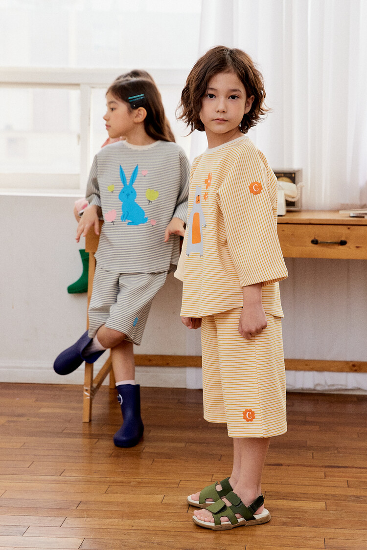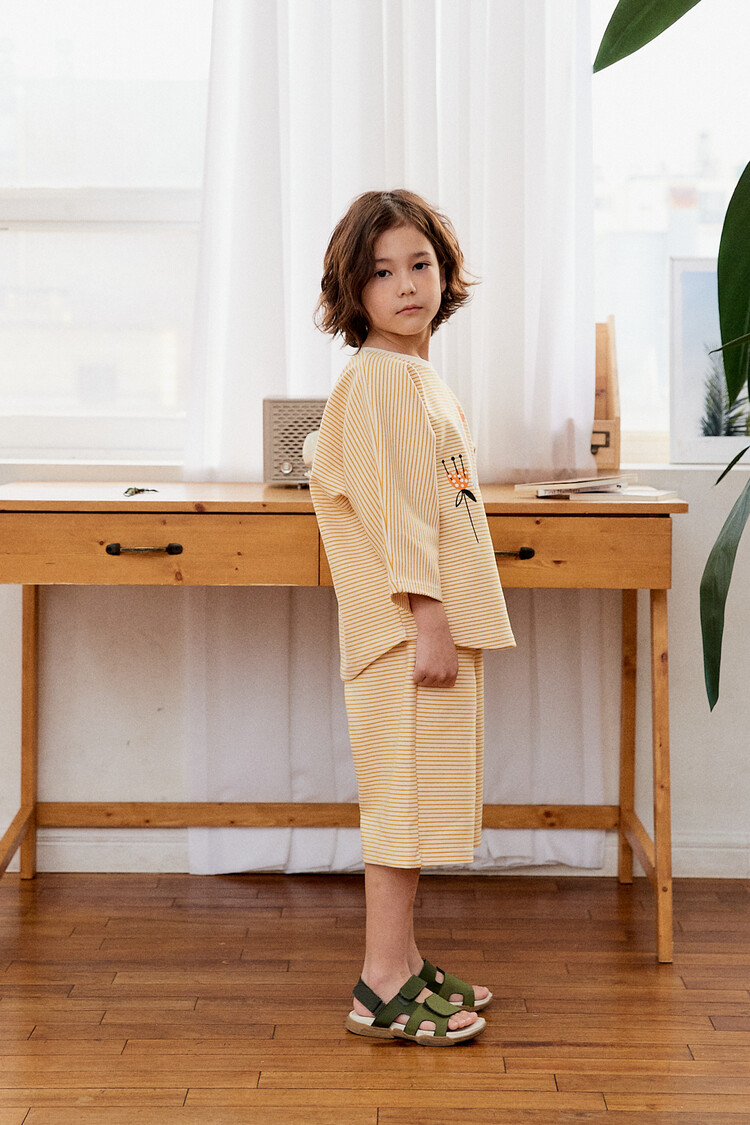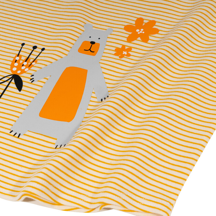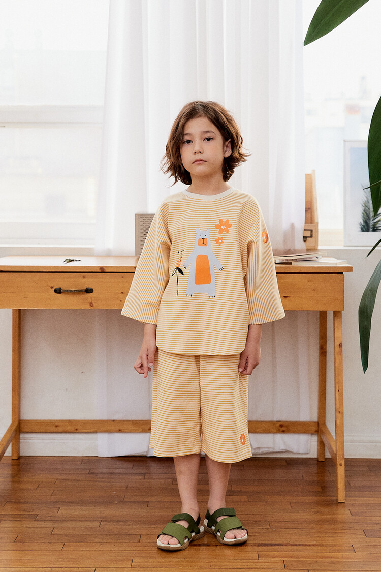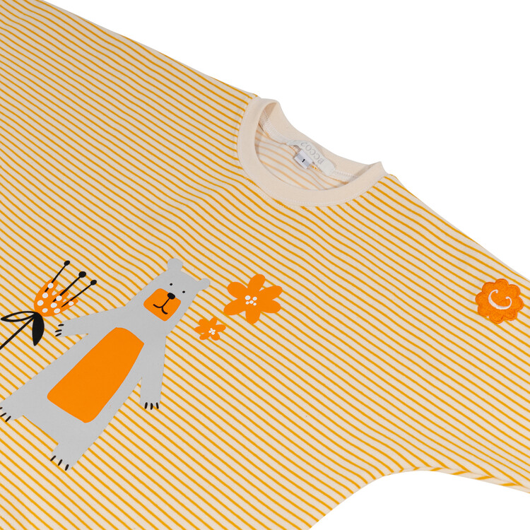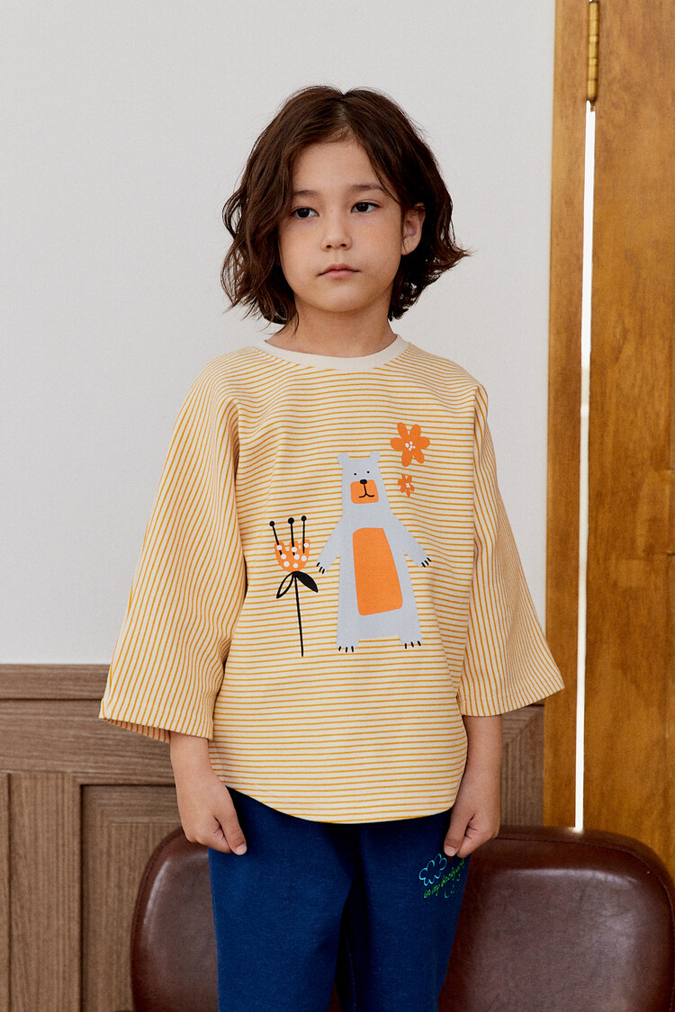 코카의 가오리 스트라이프 탑을 만나보세요. 노랑 100%면 스트라이프 원단에 부드러운 심지를 덧대어 더욱 예쁜 핏으로 탄생한 상품입니다. 편안한 가오리 모양의 탑으로 편안하게 입히실 수 있는 상의입니다. 앞면의 오렌지로 포인트를 준 곰 프린트가 특징이며, 8부 길이의 소매로 제작되었습니다. 다양한 체형의 아이들에게 잘 맞을 예쁜 봄 여름 탑을 우리 아이들에게 선물해주세요^^