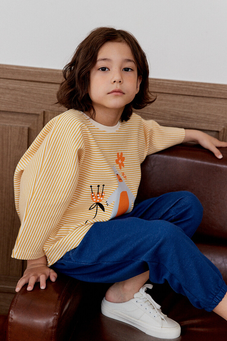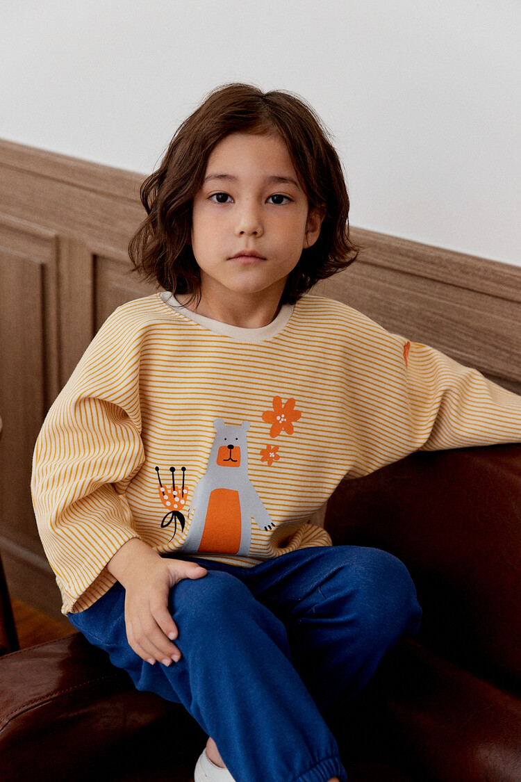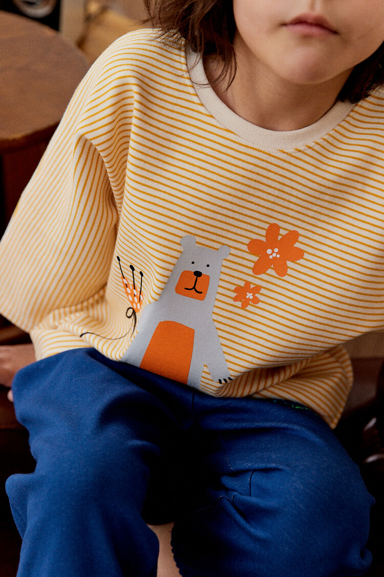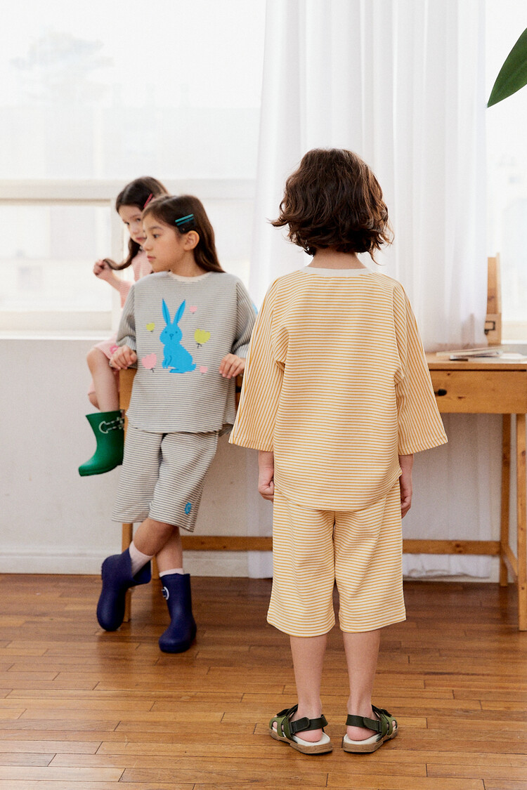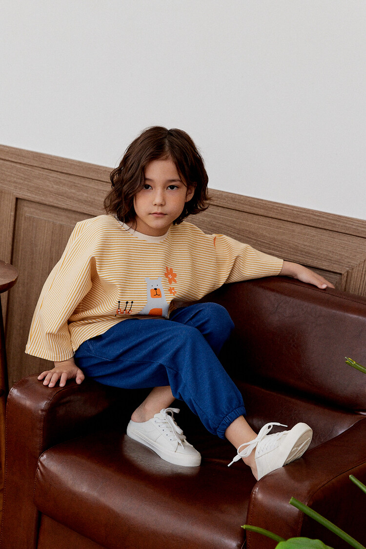 코카의 가오리 스트라이프 탑을 만나보세요. 노랑 100%면 스트라이프 원단에 부드러운 심지를 덧대어 더욱 예쁜 핏으로 탄생한 상품입니다. 편안한 가오리 모양의 탑으로 편안하게 입히실 수 있는 상의입니다. 앞면의 오렌지로 포인트를 준 곰 프린트가 특징이며, 8부 길이의 소매로 제작되었습니다. 다양한 체형의 아이들에게 잘 맞을 예쁜 봄 여름 탑을 우리 아이들에게 선물해주세요^^