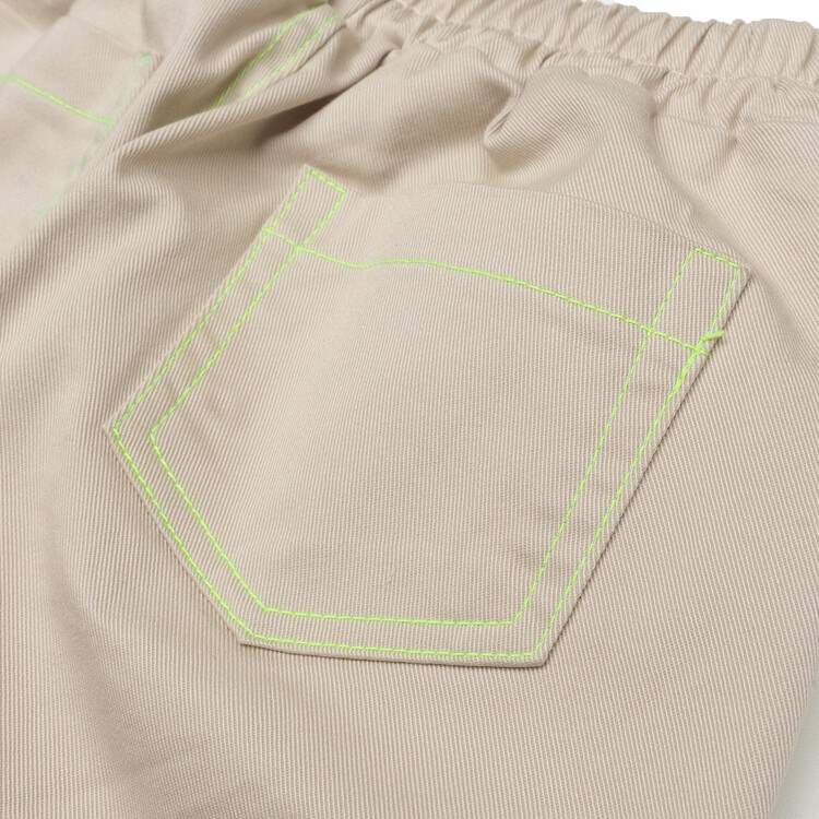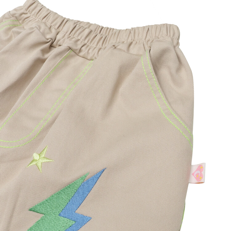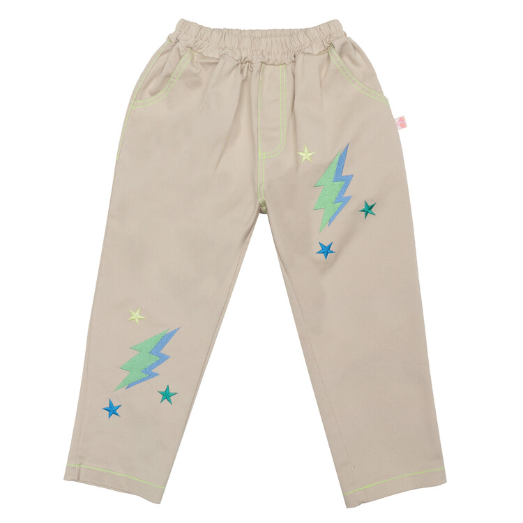작년부터 코카의 사랑이 듬뿍 들어간 자수가 포인트인 데님바지를 선보였는데요, 저희 바지들이 너무 많은 사랑을 받고 있어서 이번 S/S 23 에도 톡톡 튀는 자수가 포인트인 면바지를 소개해드려요! 적당히 베기하면서 다리부분으로 갈수록 좁아지는 테이퍼드 모양의 실루엣으로 편안하면서 멋스러운 느낌의 면바지입니다. 스판이 들어간 원단으로 편안하게 입히실 수 있어요. 시원한 칼라웨이의 번개 자수와 형광 노란색 스티치가 포인트인 봄 여름용 팬츠랍니다. 롤업에서 캐쥬얼한 느낌으로! 또는 흰색 셔츠와 매치하여 유니크한 아웃핏을 우리 아이들에게 완성해주세요^^
