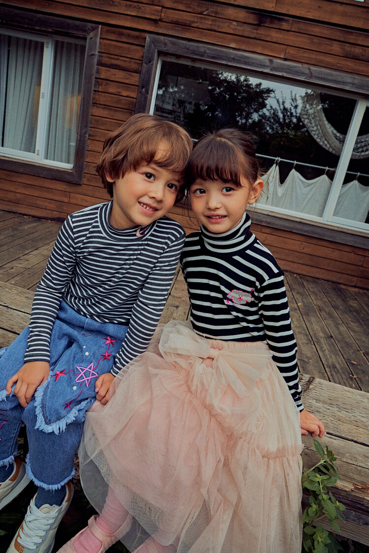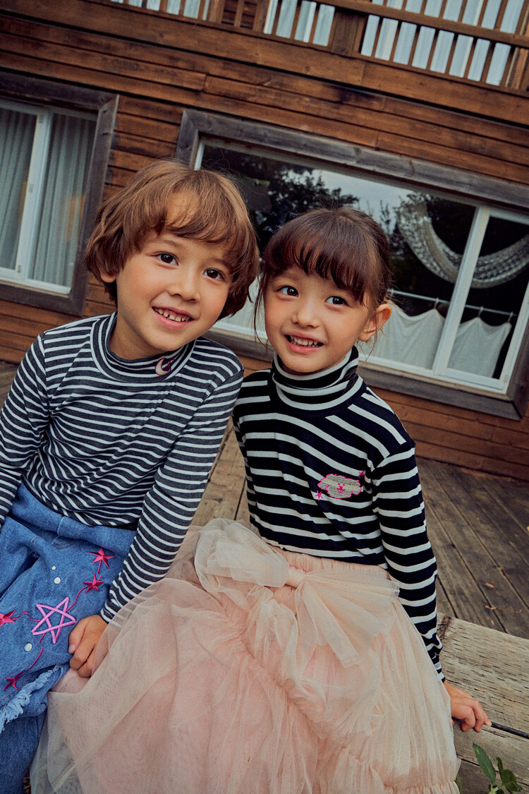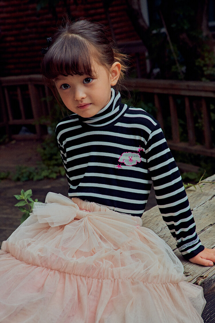 전 시즌 큰 인기를 끌었던 코카의 스트라이프 코카의 골지 티셔츠입니다. 이번 시즌에는 목폴라로 제작되었어요. 신축성이 매우 좋은 원단으로, 부드럽고 찰랑거리는 소재 고퀄리티 소재입니다. 하이넥 네크에, 가슴 부분에는 코카의 이번시즌 캐릭터 코코 강아지 자수로 포인트를 주었으며 핫핑크로 더욱 톡톡 튀게 포인트를 주었어요. 단독으로 입어도 예쁘고, 데일리 이너로 딱 맞는 따뜻한 폴라 티셔츠입니다. 칼라는 블랙 스트라이프와 화이트 스트라이프 2가지 색상으로 소개됩니다. 텐타덤블 바이오워싱 처리된 소재로 늘어남이나 뒤틀림이 전혀 없고 세탁 하여도 높은 퀄리티 그대로 유지하실 수 있는 머스트 아이템! 우리 아이들에게 꼭 선물해주세요^^