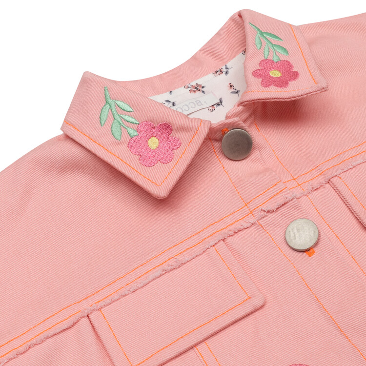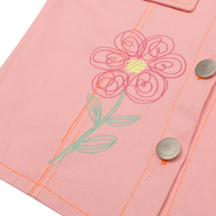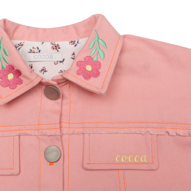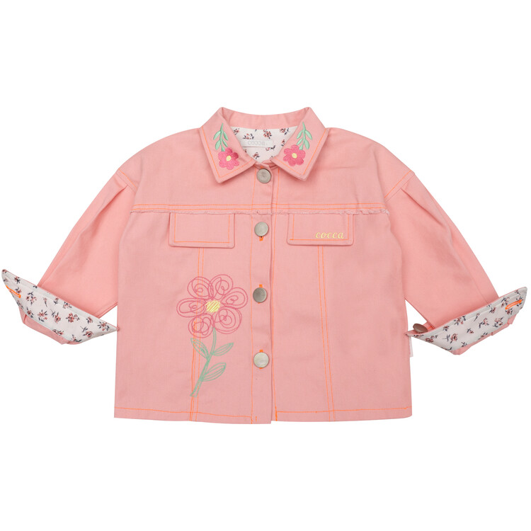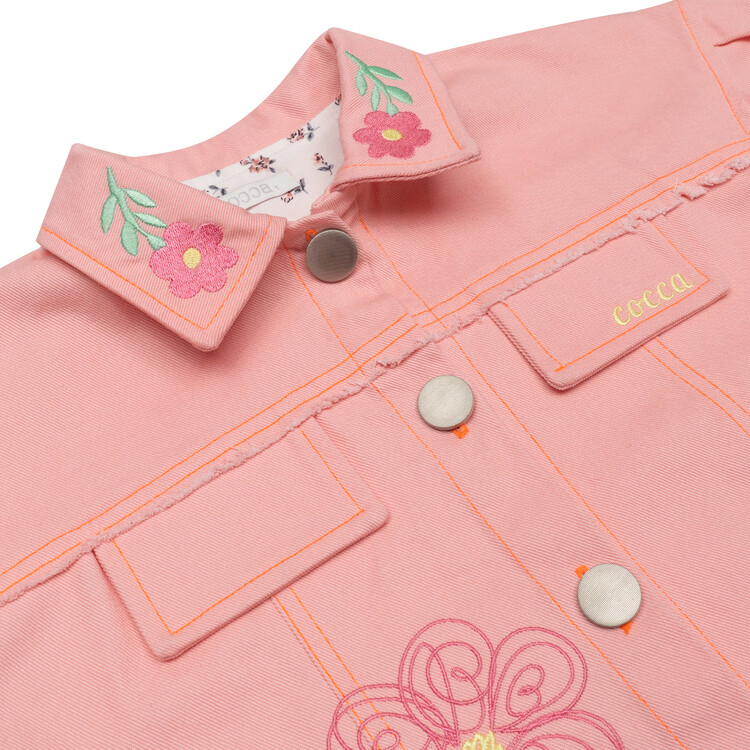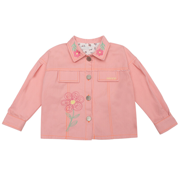 여아들을 위한 핑크 데님 자켓을 소개합니다^^오른쪽 몸판과 자켓 카라에 꽃 자수로 포인트를 주었고 잔잔한 플로럴 프린트의 원단을 덧대어 소매를 접었을 때 더욱 아기자기하고 귀여운 느낌이 들도록 제작하였어요. 디테일이 듬뿍 들어간 코카 자켓은 예쁜 칼라감과 자수가 특징입니다. 심플한 화이트 티셔츠 위에 코카 핑크 데님 자켓 하나만 걸쳐도 예쁜 아웃핏 완성이랍니다. 싱그러운 봄날에 우리 아이들에게 입혀주세요^^