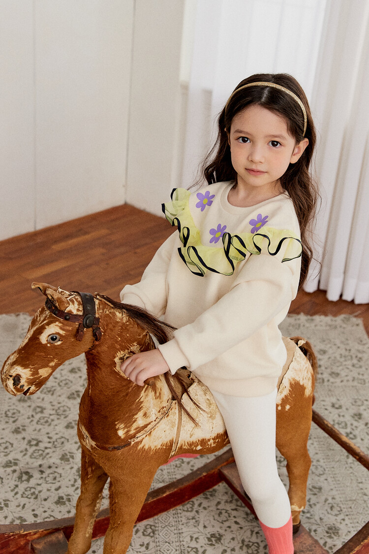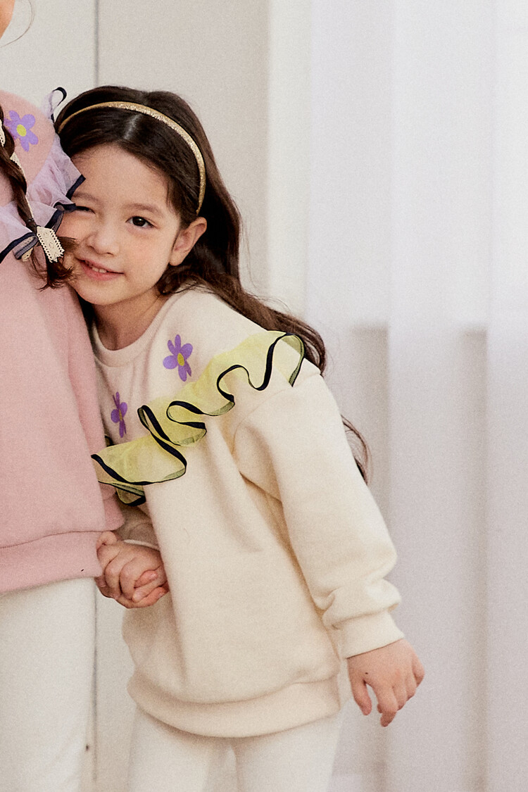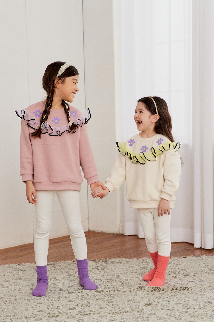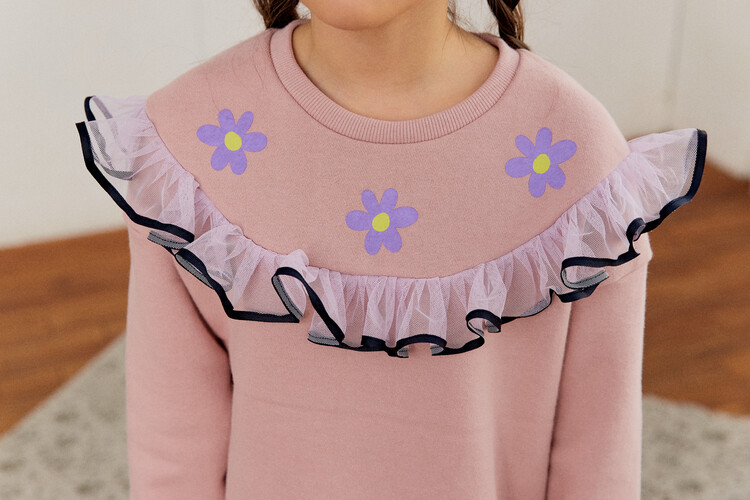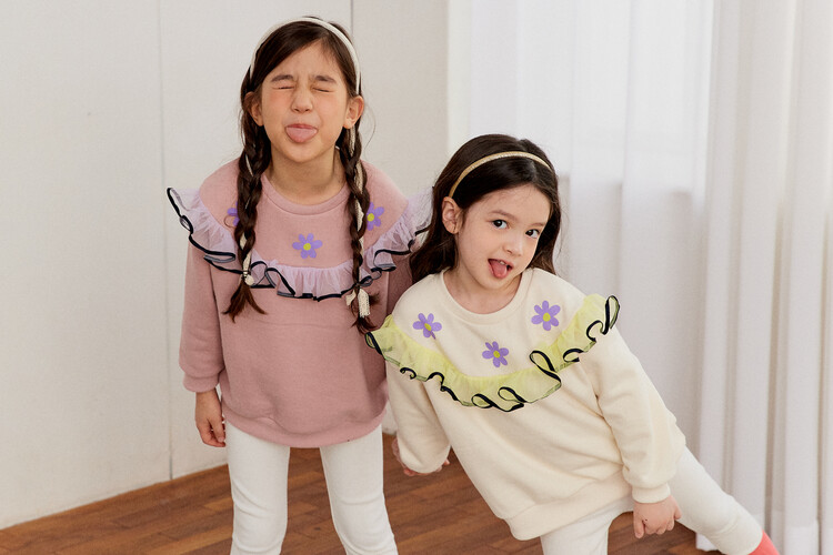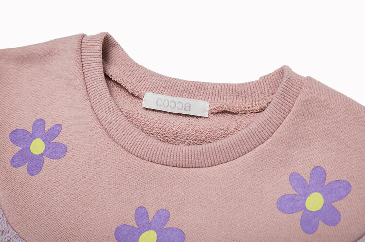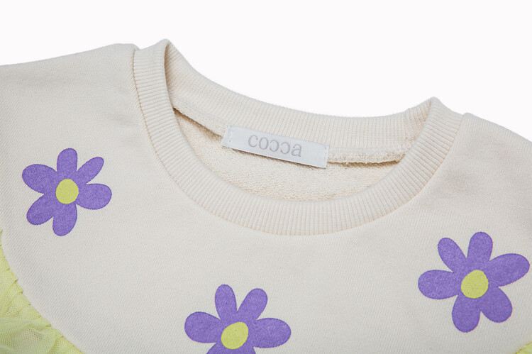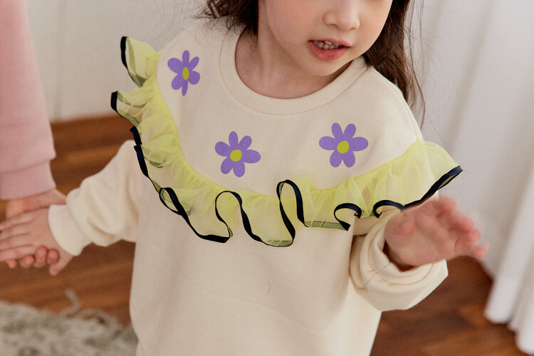 코카의 플로럴 프린트와 레이스가 매력적인 여아 스웻셔츠입니다. 100% 국내 쮸리 면으로 제작된 이 스웻셔츠는 기본 스웻셔츠 핏으로 만들어졌어요. 신축성이 좋아 다양한 체형의 아이들에게 예쁘게 맞을 핏이에요. 후가공 워싱 까지 완벽하게 마무리 된 소재로 뒤틀리거나 늘어남이 없으며 예쁜 핏으로 기본에 충실한 스웻셔츠랍니다. 아이보리와 인디핑크 두 가지로 선보입니다. 아이보리에는 화사한 레몬그린 레이스, 인디핑크에는 연보라색 레이스로 네이비 골지테이프로 마무리하였어요. 봄 날에 화이트 반팔 티 위에 쓱 입히시기 좋을 편안한 스웻셔츠를 우리 아이들에게 선물해주세요^^