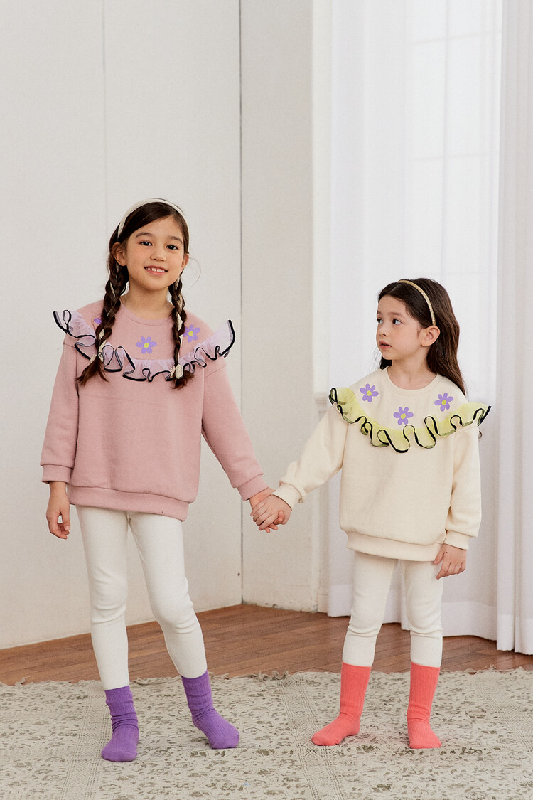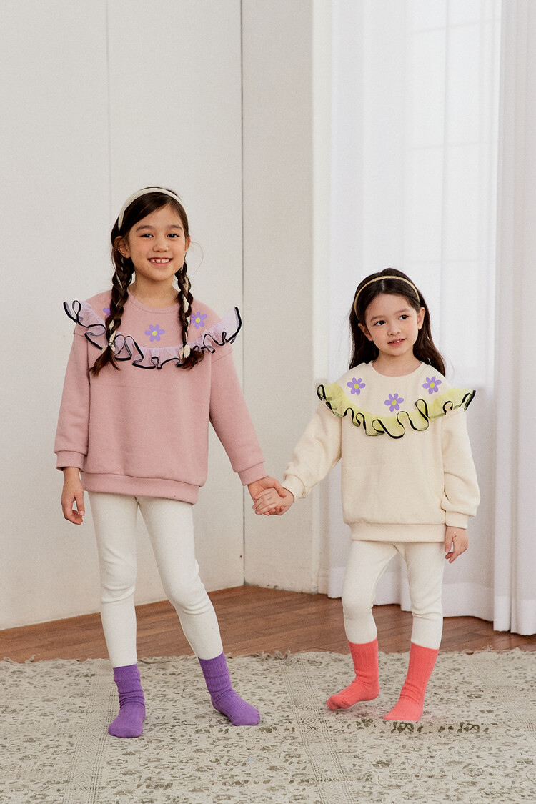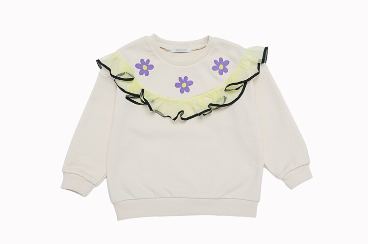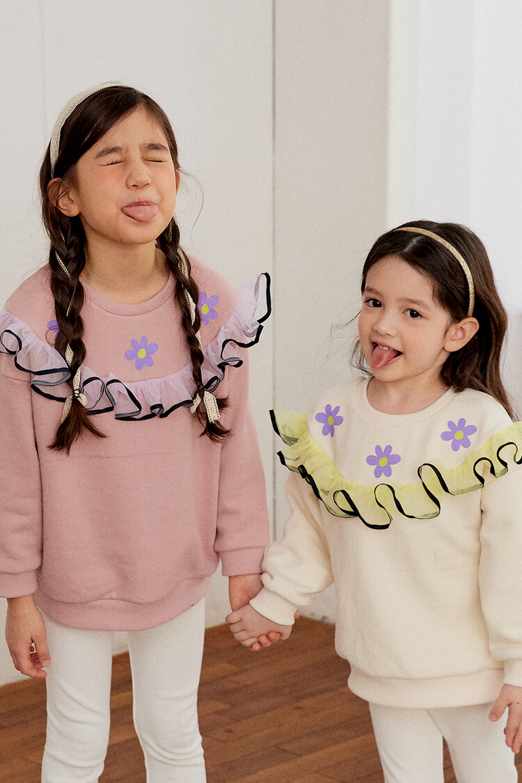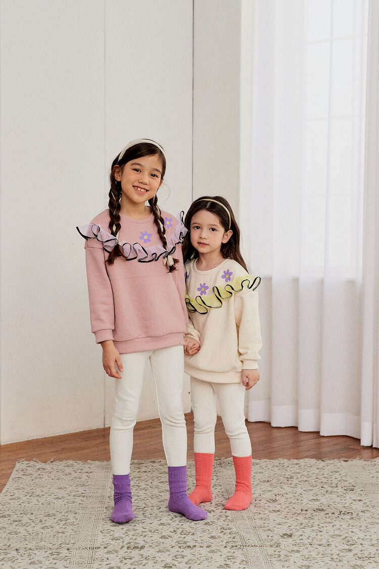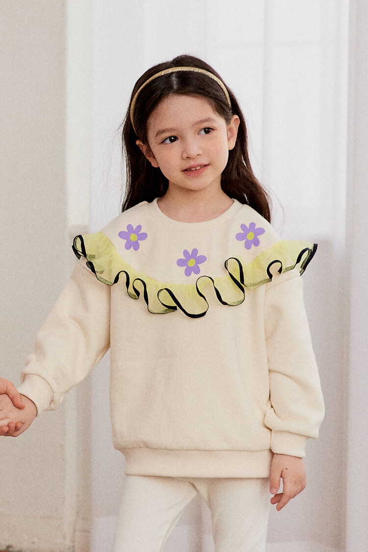 코카의 플로럴 프린트와 레이스가 매력적인 여아 스웻셔츠입니다. 100% 국내 쮸리 면으로 제작된 이 스웻셔츠는 기본 스웻셔츠 핏으로 만들어졌어요. 신축성이 좋아 다양한 체형의 아이들에게 예쁘게 맞을 핏이에요. 후가공 워싱 까지 완벽하게 마무리 된 소재로 뒤틀리거나 늘어남이 없으며 예쁜 핏으로 기본에 충실한 스웻셔츠랍니다. 아이보리와 인디핑크 두 가지로 선보입니다. 아이보리에는 화사한 레몬그린 레이스, 인디핑크에는 연보라색 레이스로 네이비 골지테이프로 마무리하였어요. 봄 날에 화이트 반팔 티 위에 쓱 입히시기 좋을 편안한 스웻셔츠를 우리 아이들에게 선물해주세요^^