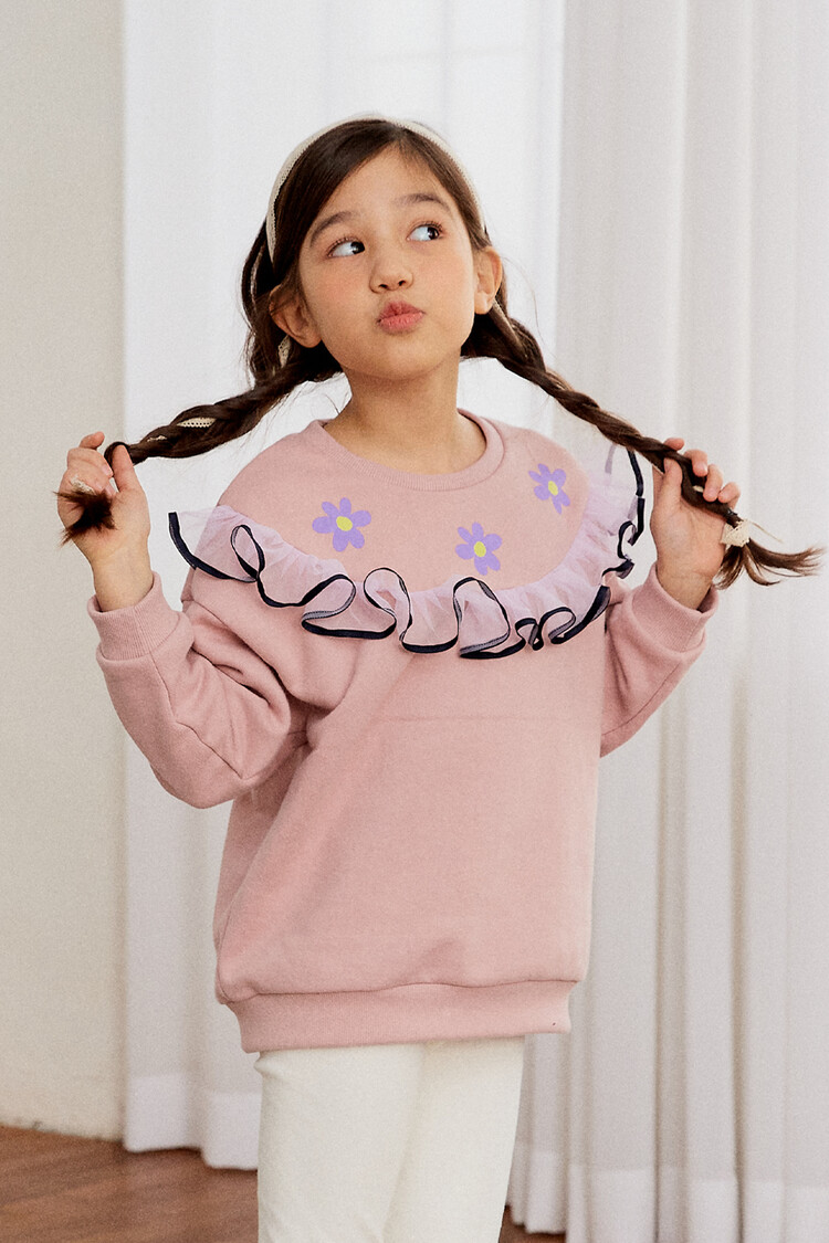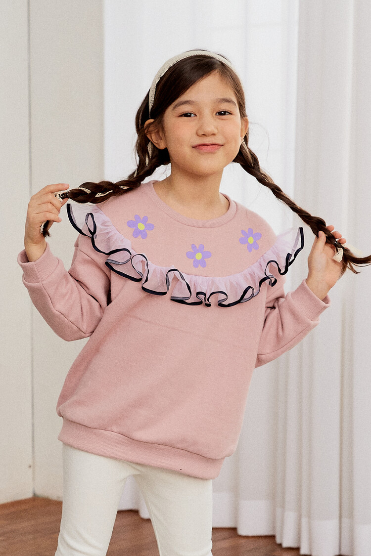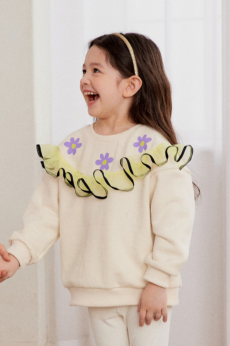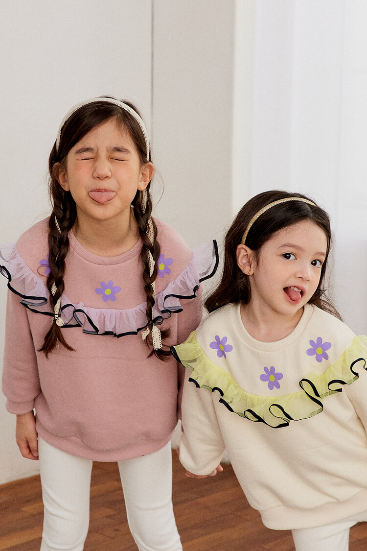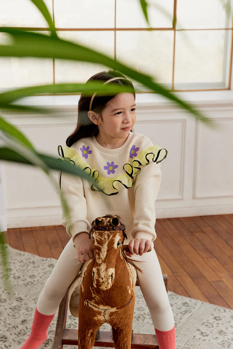 코카의 플로럴 프린트와 레이스가 매력적인 여아 스웻셔츠입니다. 100% 국내 쮸리 면으로 제작된 이 스웻셔츠는 기본 스웻셔츠 핏으로 만들어졌어요. 신축성이 좋아 다양한 체형의 아이들에게 예쁘게 맞을 핏이에요. 후가공 워싱 까지 완벽하게 마무리 된 소재로 뒤틀리거나 늘어남이 없으며 예쁜 핏으로 기본에 충실한 스웻셔츠랍니다. 아이보리와 인디핑크 두 가지로 선보입니다. 아이보리에는 화사한 레몬그린 레이스, 인디핑크에는 연보라색 레이스로 네이비 골지테이프로 마무리하였어요. 봄 날에 화이트 반팔 티 위에 쓱 입히시기 좋을 편안한 스웻셔츠를 우리 아이들에게 선물해주세요^^