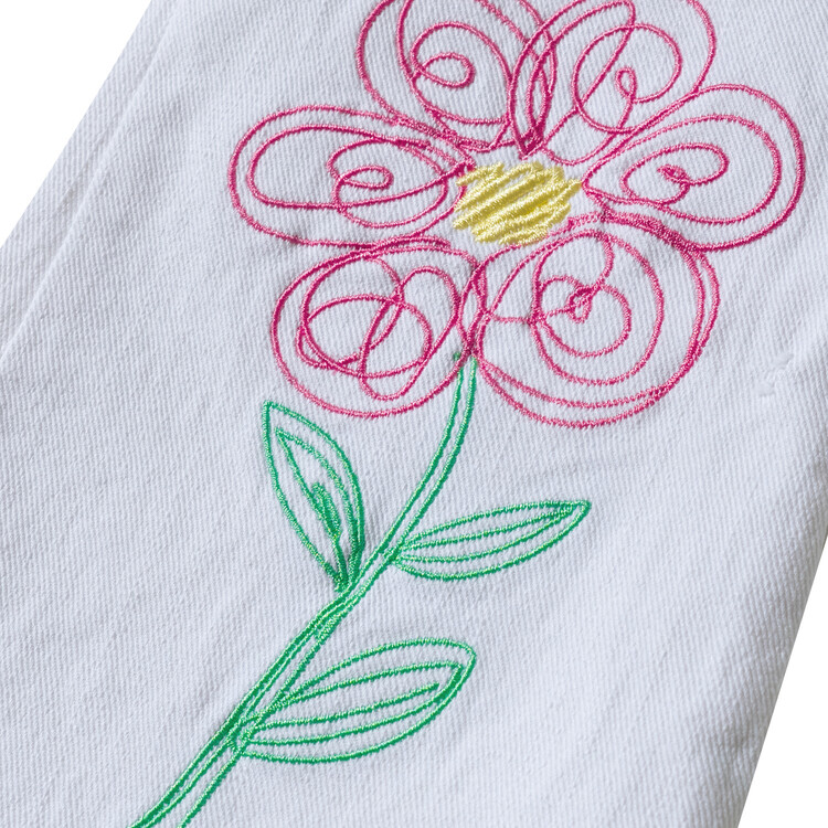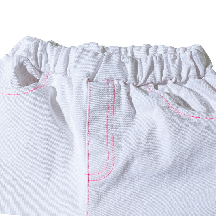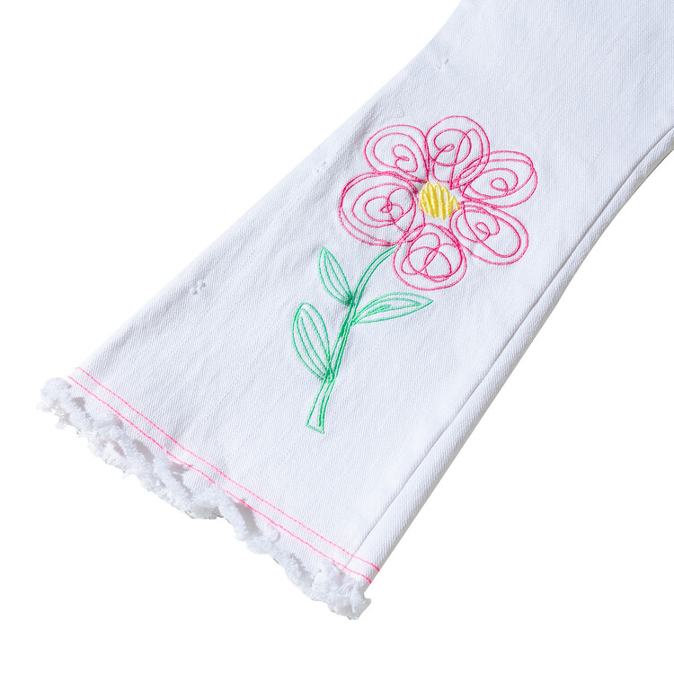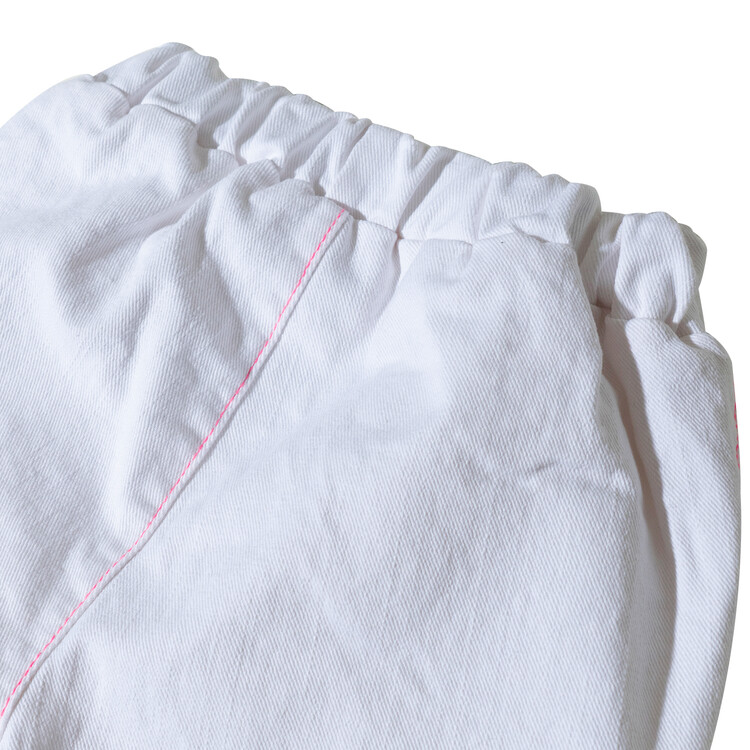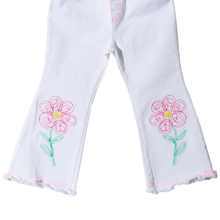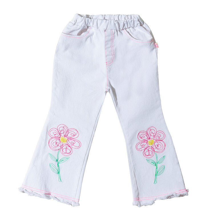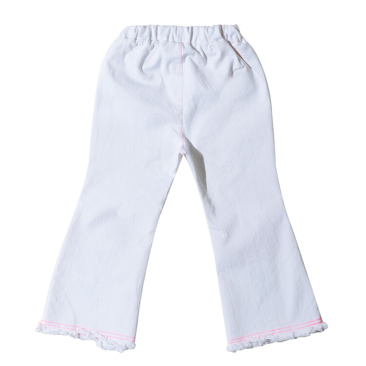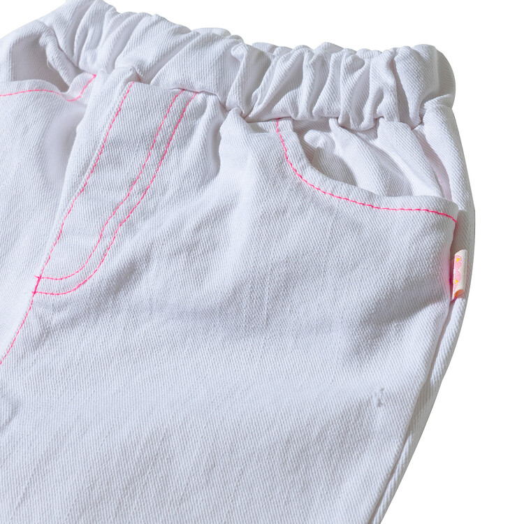 매 시즌 몇 차례 리오더를 하는 코카의 인기 아이템 '부츠컷 데님' 입니다. 이번 시즌에는 화이트 데님으로 소개드려요^^ 슬럽 데님으로 조직감이 보이는 멋스러운 고가의 원단으로 무릎 아래쪽으로 핸드 드로잉한 플라워 자수가 포인트인 팬츠랍니다! 스판이 들어가 있는 10수 데님 원단으로 입었을 때 편안함은 물론! 몇번 입으면 늘어나는 재질이 아닌 세탁을 여러번 해도 변형이 없는 고가의 데님 원단으로 제작하였어요. 형광 핑크 스티치로 톡톡 튀는 디테일을 더하여 무더운 여름날에 어울리는 칼라감으로 화이트 민소매 티와 매치하면 여름 룩 완성! 허리는 부드러운 고무줄 밴드를 사용하였고, 다양한 체형의 아이들에게 편안하게 맞는 핏으로, 완벽한 패턴으로 제작 되었답니다. 바이오 워싱 처리되어 더욱 부드럽고 편안한 코카 데님! 발목이 살짝 보이는 크롭 기장감으로 더욱 시원한 룩을 연출할 수 있는 머스트 아이템이예요! 이번 시즌에도 코카 인기템 놓치지 마세요^^