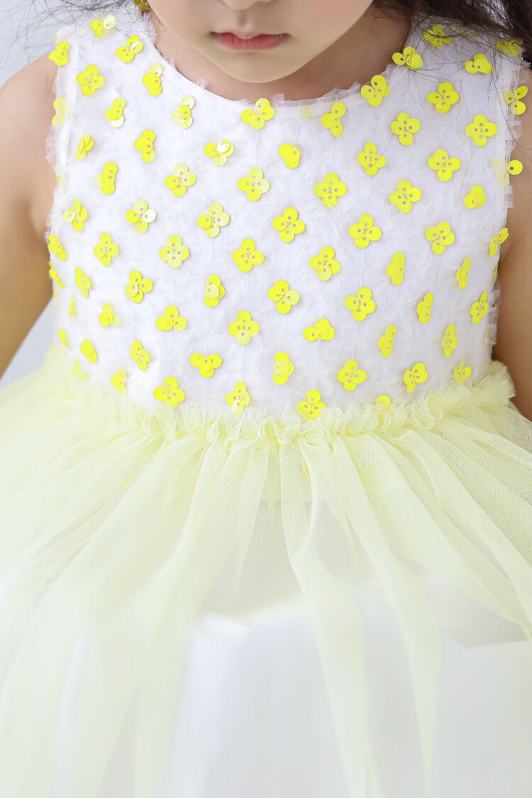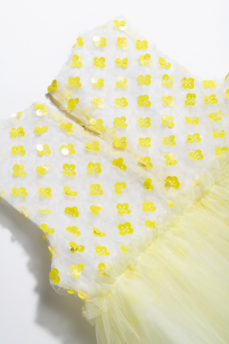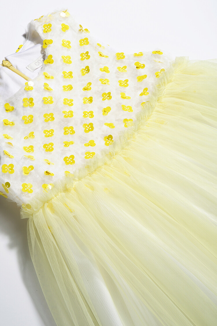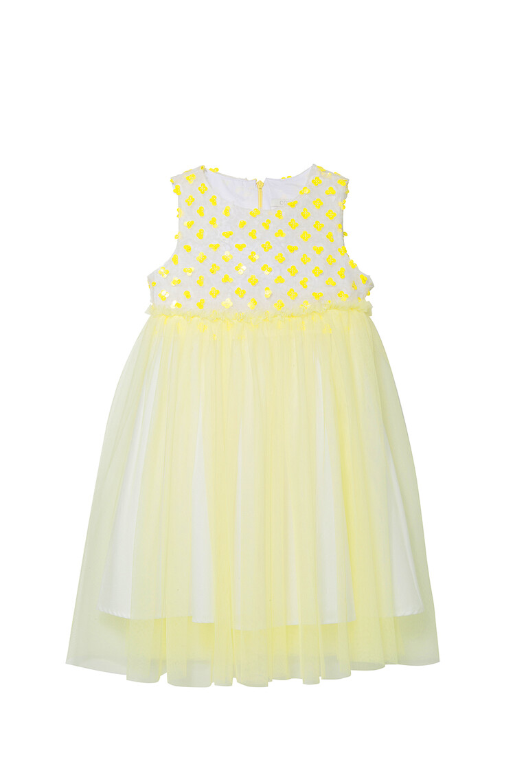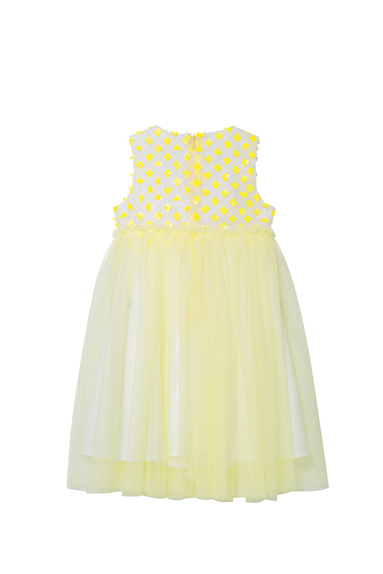 상큼한 레몬칼라 비즈장식 원단으로 제작된 화려한 코카의 봄 드레스를 만나보세요! 비즈 장식의 화려한 몸판과 풍성한 샤가 조화를 이루는 디자인입니다. 면소재의 시원한 안감이 덧대어져 비침걱정이 없으며 화이트 티셔츠 또는 가디건과 연출하여 우리 아이들을 예쁜 공주님으로 만들어주세요!
