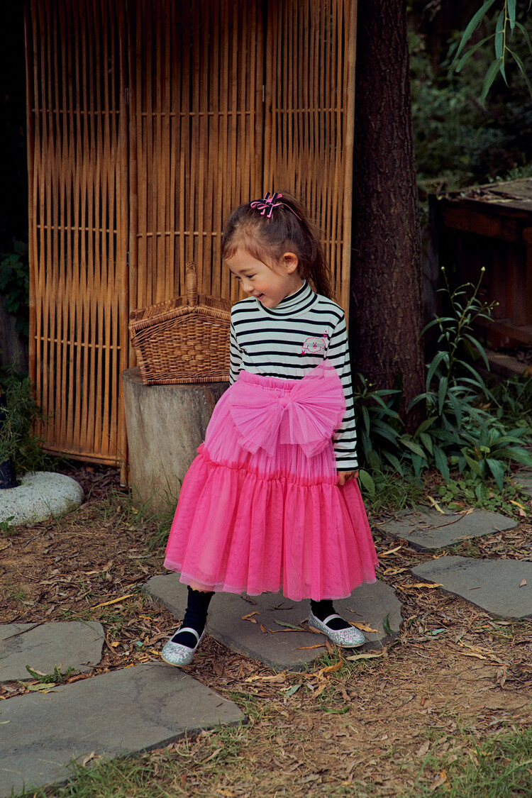 코카의 풍성한 튤 스커트를 만나보세요. 샤로 만들어진 큰 리본이 특징인 이 스커트는 풍성한 볼륨감을 자랑합니다. 리본이 앞쪽으로 오게 입어도 되고, 뒤쪽으로 가게 입어도 무관한 스커트입니다^^ 쨍한 투톤의 핑크 칼라로 우리 공주님들의 마음을 사로잡을거예요. 코카는 스커트를 제작할 때 안감을 매우 중요시 하는데요, 겉감으로 쓰이는 고급 면 스판 소재를 사용하여 우리 아이들이 입었을 때 더욱 따뜻하고 포근한 느낌이 들도록 하였습니다. 짧지 않은 부드러운 안감을 스커트 기장과 비슷하게 맞추어 안정감 있는 실루엣으로 제작하였어요. 코카 리본 스커트는 사계절용 스커트 입니다. 추운 가을 겨울에는 스타킹 또는 레깅스와 레이어 하시면 되고, 날씨가 풀리면 단독으로 입히셔도 좋을 스커트랍니다.