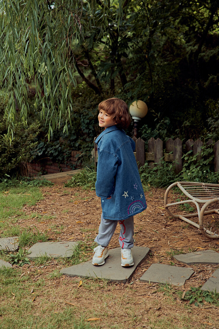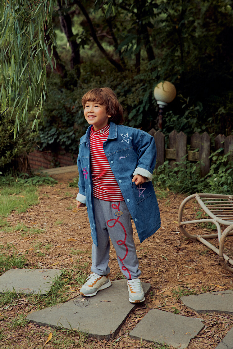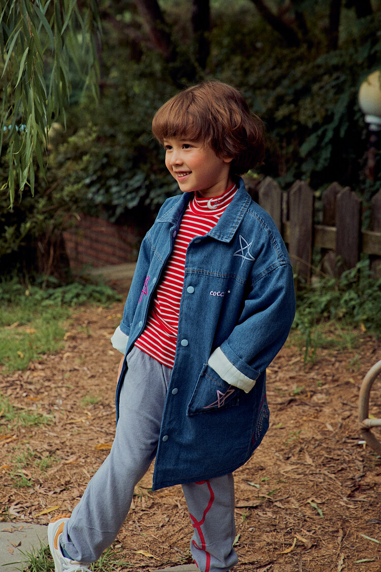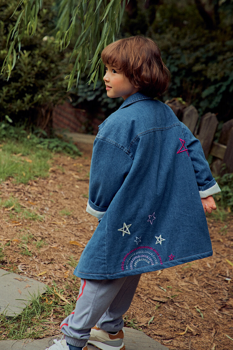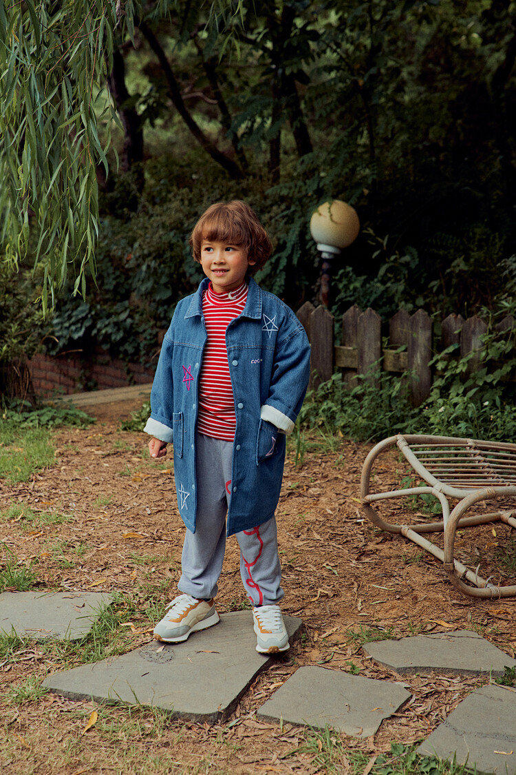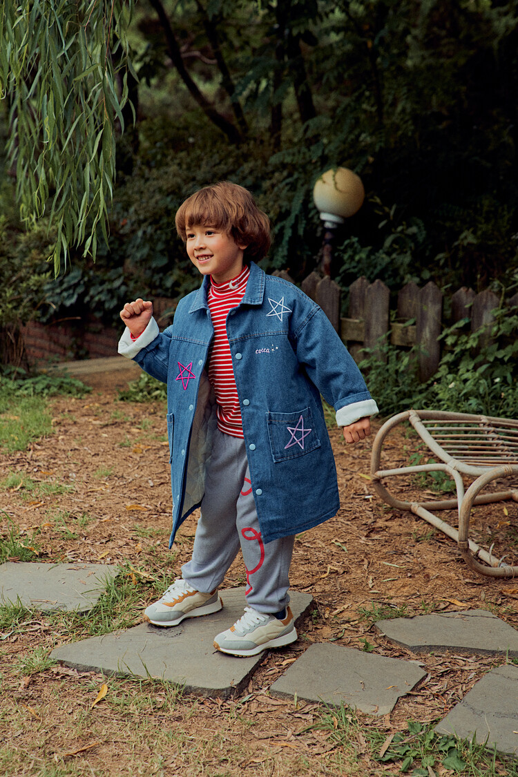 올 겨울을 책임져줄 코카의 스타 데님 오버핏 패딩 코트입니다. 고급스러운 칼라로 워싱된 데님과 3온스 솜을 덧댄 패딩 안감이 더해져 더욱 따뜻하고 편하게 입을 수 있는 가을, 겨울용 코트 랍니다. 앞면의 큼지막한 쨍한 칼라의 별 자수와 뒷면의 코카 알파벳으로 만든 무지개 자수가 더해져 더욱 재미있는 코트로 탄생하였어요. 마감은 하늘색 스냅으로 마무리하여 더욱 간편한 여밈을 제공하며, 남아 여아 모두 츄리닝 세트와 연출하면 편안하고 스타일리시한 룩 완성이에요! 앞면도 톡톡튀고 뒷면에도 디테일이 있는 고퀄리티의 자수를 듬뿍 넣은 코트랍니다. 올 겨울 정말 유용하게 입히실 수 있는 자켓이랍니다. 나만 갖고 싶은 톡톡 튀는 코카 가을 겨울용 코트는 모두의 시선을 사로 잡을거에요! 우리 아이들에게 꼭 선물해주세요^^