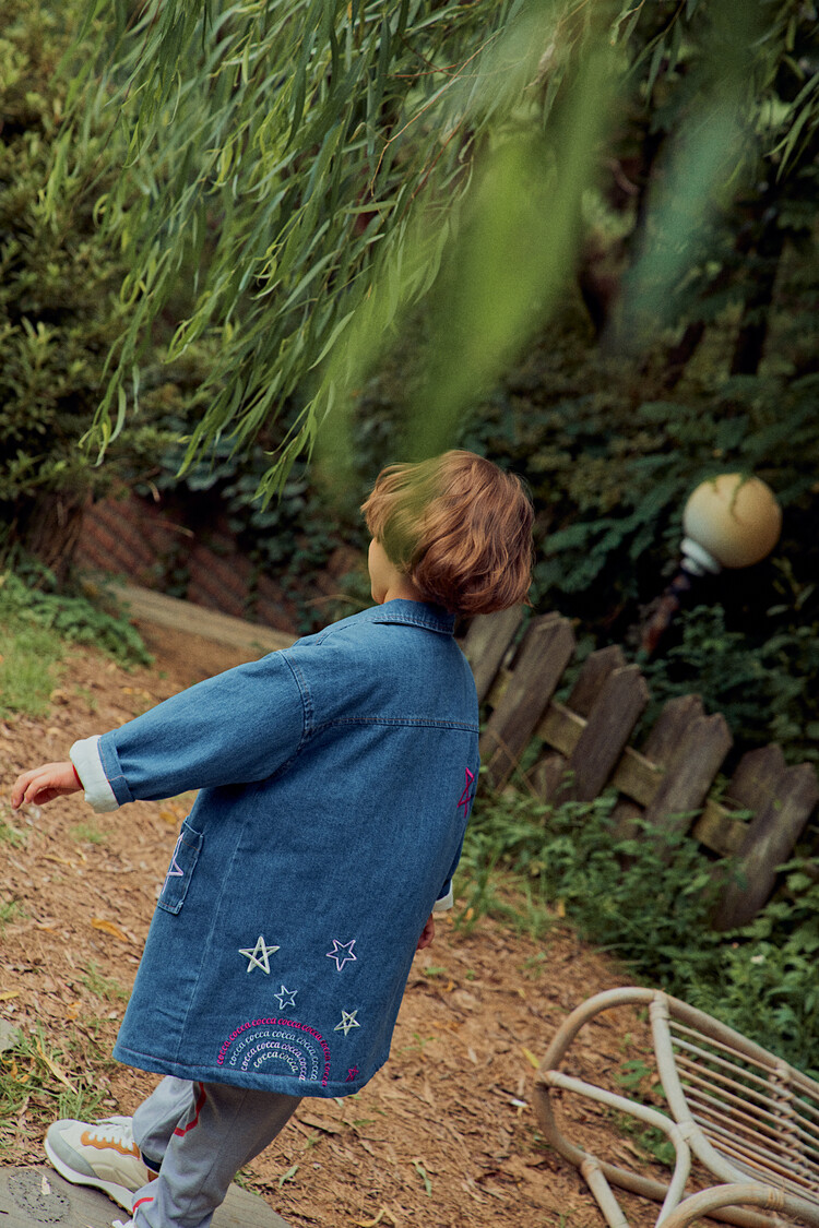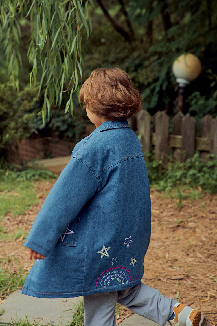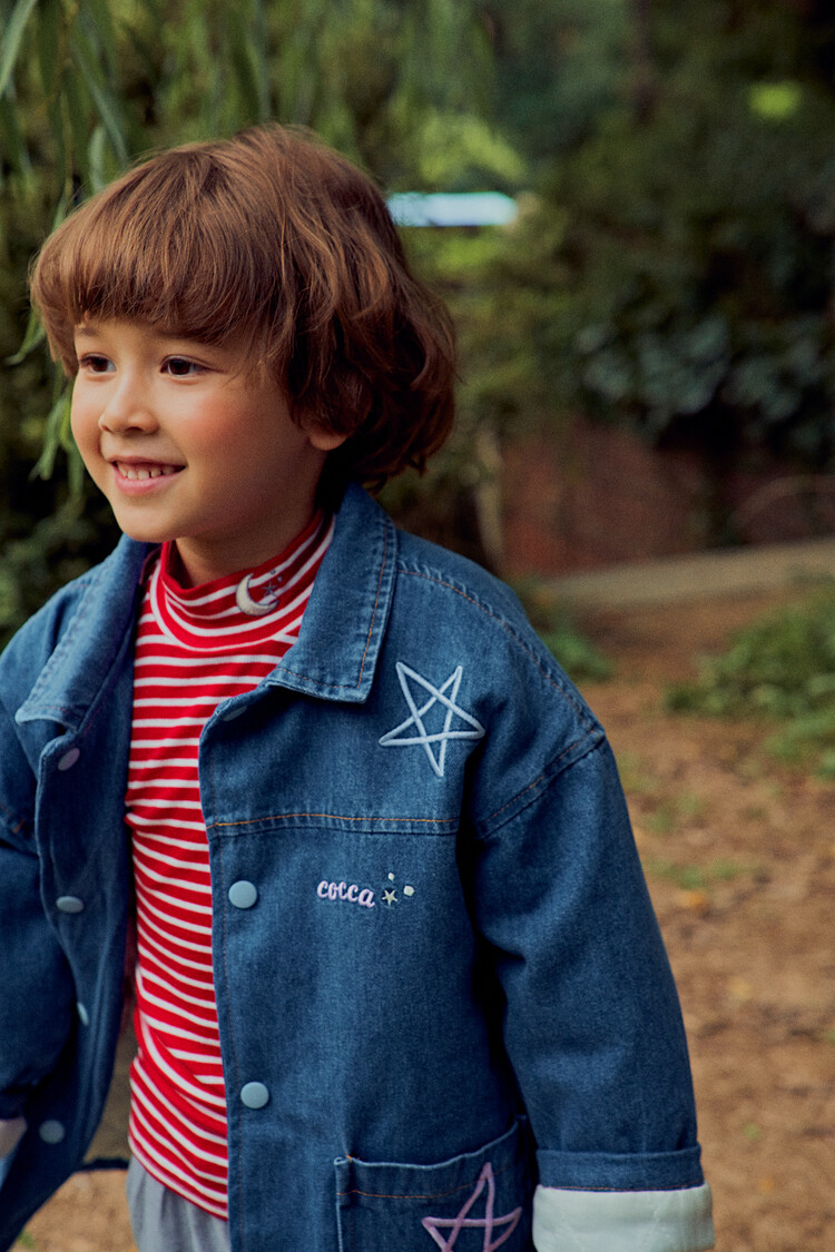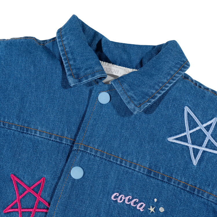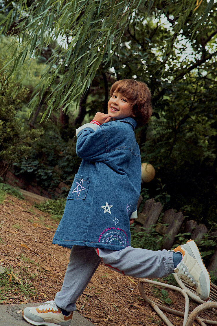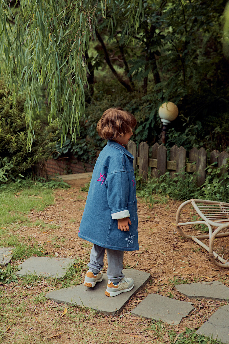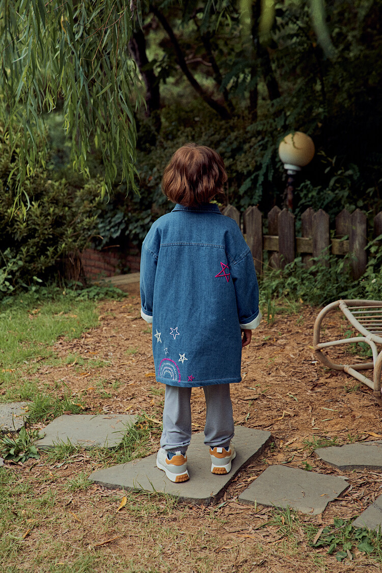 올 겨울을 책임져줄 코카의 스타 데님 오버핏 패딩 코트입니다. 고급스러운 칼라로 워싱된 데님과 3온스 솜을 덧댄 패딩 안감이 더해져 더욱 따뜻하고 편하게 입을 수 있는 가을, 겨울용 코트 랍니다. 앞면의 큼지막한 쨍한 칼라의 별 자수와 뒷면의 코카 알파벳으로 만든 무지개 자수가 더해져 더욱 재미있는 코트로 탄생하였어요. 마감은 하늘색 스냅으로 마무리하여 더욱 간편한 여밈을 제공하며, 남아 여아 모두 츄리닝 세트와 연출하면 편안하고 스타일리시한 룩 완성이에요! 앞면도 톡톡튀고 뒷면에도 디테일이 있는 고퀄리티의 자수를 듬뿍 넣은 코트랍니다. 올 겨울 정말 유용하게 입히실 수 있는 자켓이랍니다. 나만 갖고 싶은 톡톡 튀는 코카 가을 겨울용 코트는 모두의 시선을 사로 잡을거에요! 우리 아이들에게 꼭 선물해주세요^^