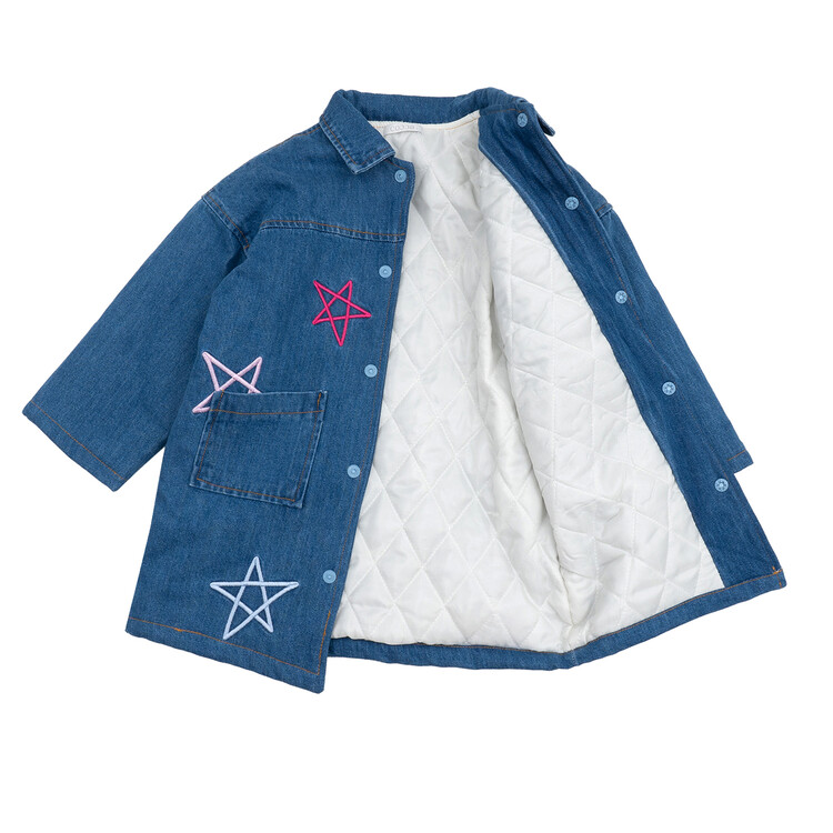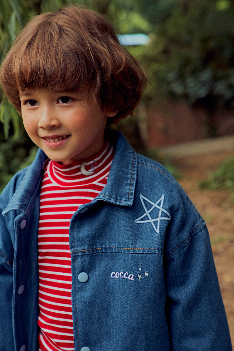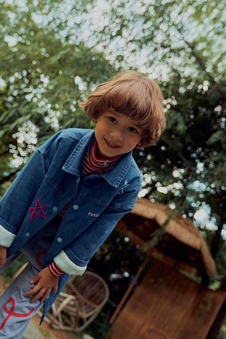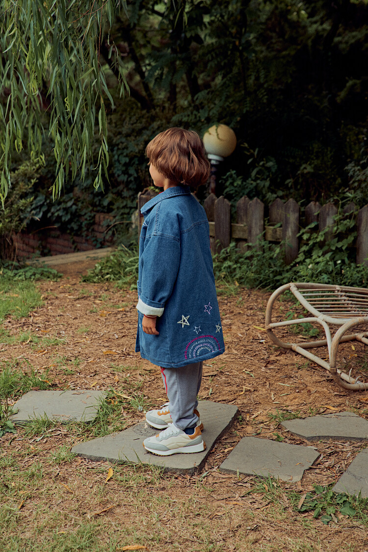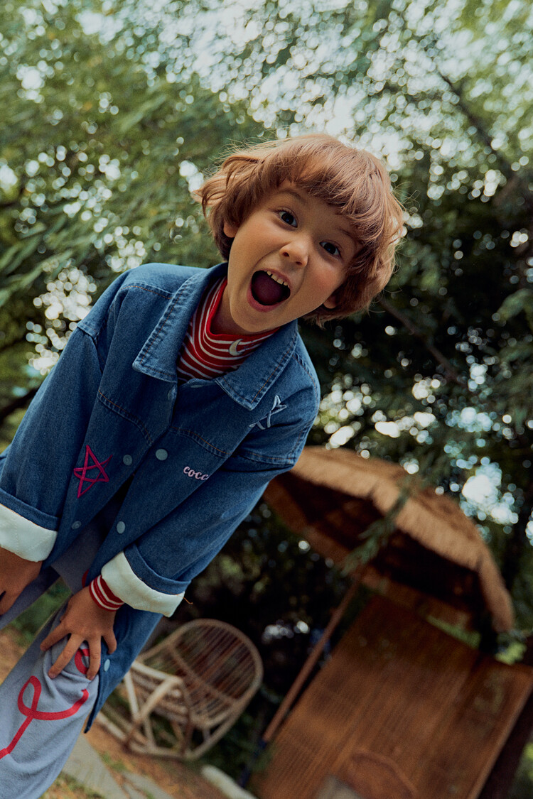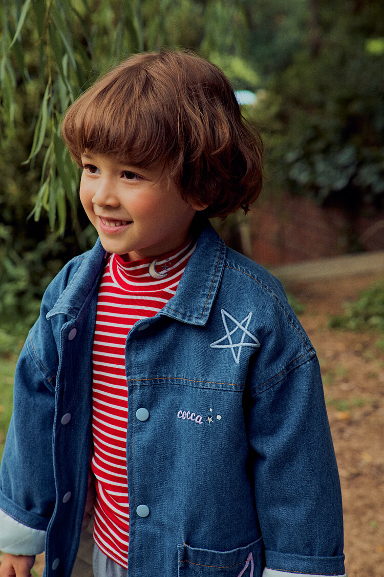 올 겨울을 책임져줄 코카의 스타 데님 오버핏 패딩 코트입니다. 고급스러운 칼라로 워싱된 데님과 3온스 솜을 덧댄 패딩 안감이 더해져 더욱 따뜻하고 편하게 입을 수 있는 가을, 겨울용 코트 랍니다. 앞면의 큼지막한 쨍한 칼라의 별 자수와 뒷면의 코카 알파벳으로 만든 무지개 자수가 더해져 더욱 재미있는 코트로 탄생하였어요. 마감은 하늘색 스냅으로 마무리하여 더욱 간편한 여밈을 제공하며, 남아 여아 모두 츄리닝 세트와 연출하면 편안하고 스타일리시한 룩 완성이에요! 앞면도 톡톡튀고 뒷면에도 디테일이 있는 고퀄리티의 자수를 듬뿍 넣은 코트랍니다. 올 겨울 정말 유용하게 입히실 수 있는 자켓이랍니다. 나만 갖고 싶은 톡톡 튀는 코카 가을 겨울용 코트는 모두의 시선을 사로 잡을거에요! 우리 아이들에게 꼭 선물해주세요^^
