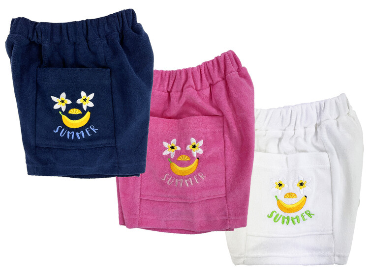코카의 핫썸머용 테리 쇼츠를 만나보세요. 수영장 또는 무더운 여름 날 잘 입히실 수 있는 기본 타올 바지입니다. 양쪽 주머니의 그래픽 자수가 포인트인 이 쇼츠는 3가지 칼라로 만나보실 수 있습니다. 부드러운 고무줄 허리밴드와 톡톡 튀는 눈에 띄는 자수 타올바지를 올 여름 우리 아이들에게 선물해주세요^^