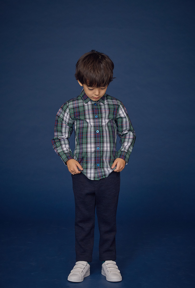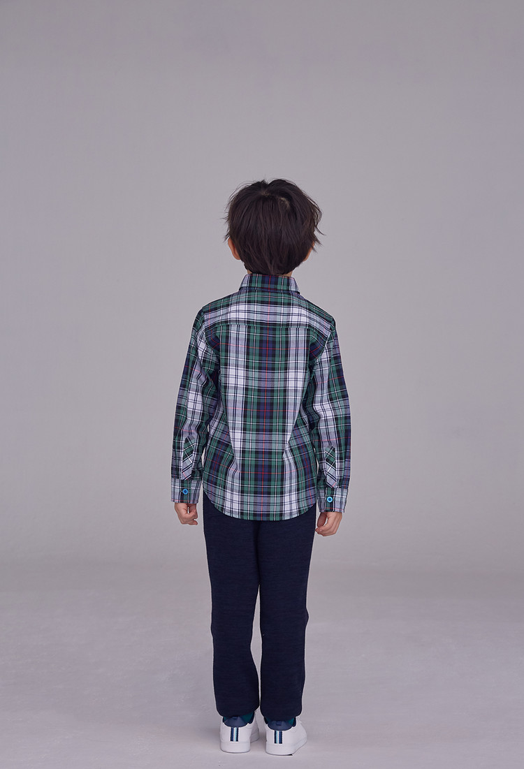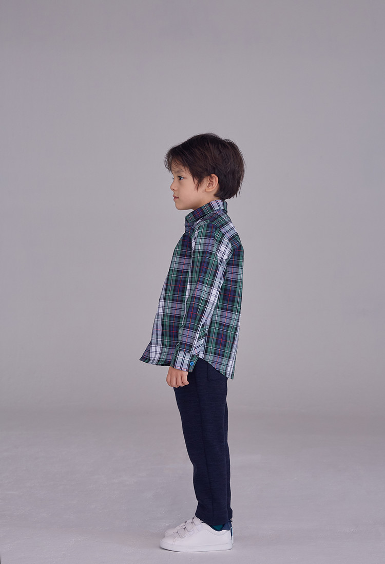 코카의 단정한 남아 체크 셔츠를 소개합니다. 부드러운 100% 면 원단으로 제작되었으며, 밝은 블루 칼라의 단추로 포인트를 준 제품입니다. 쌀쌀한 가을과 겨울에 어울리는 딥 그린 체크 패턴으로 면바지 또는 코카의 오레오 브러시 팬츠와 매치하여 우리 아이들에게 깔끔한 데일리 룩을 완성해 주세요!